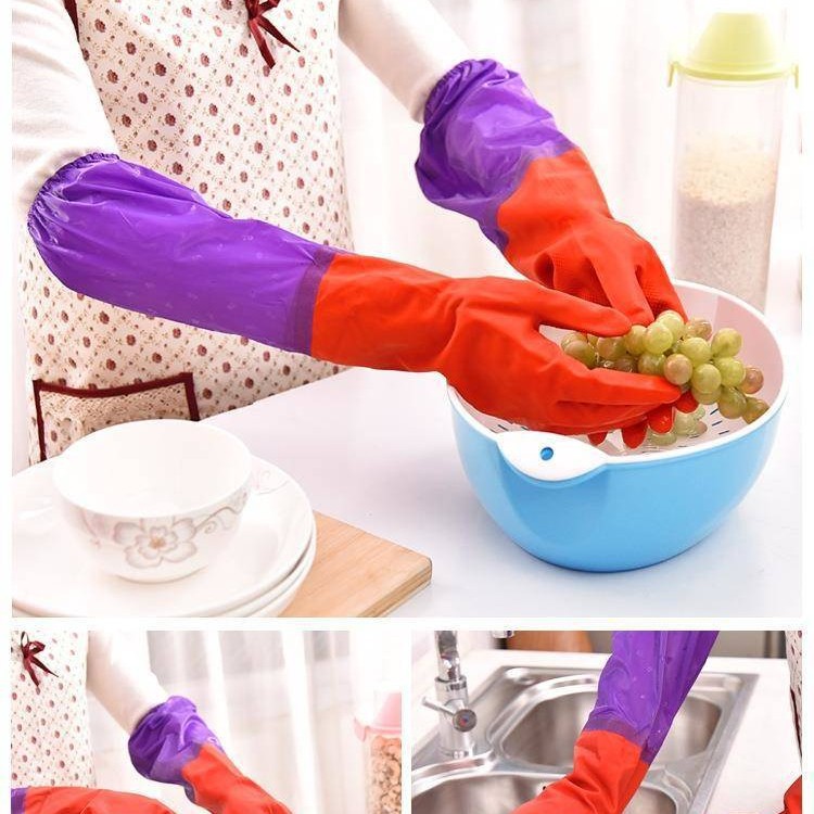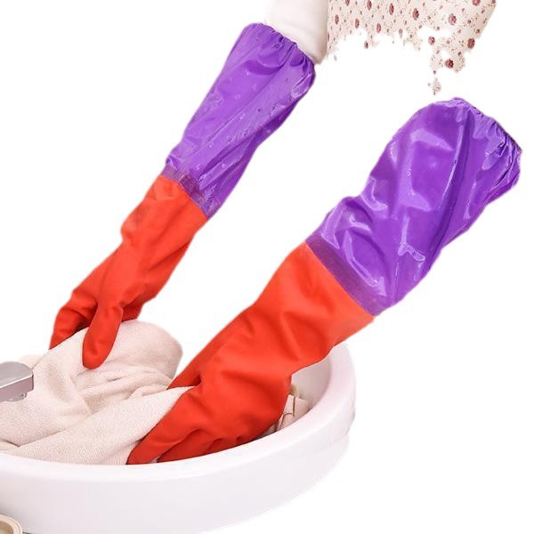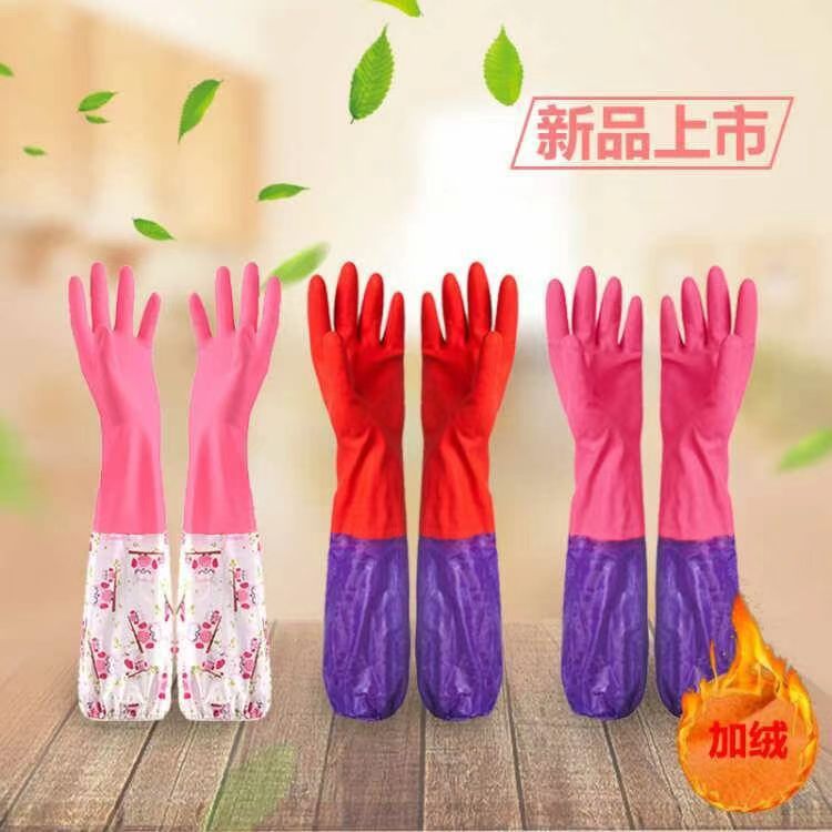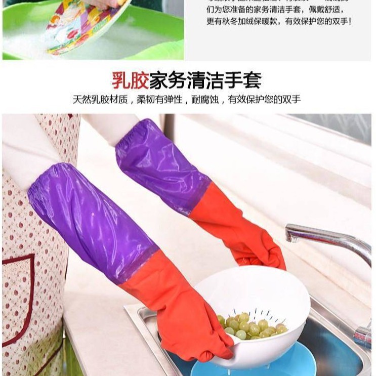 보라색 소매 라텍스 기모 따뜻한 꽃 소매 세탁 라텍스 가정용 장갑 drawstring 식기 세척 긴 장갑 청소