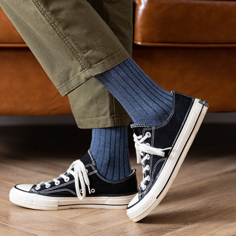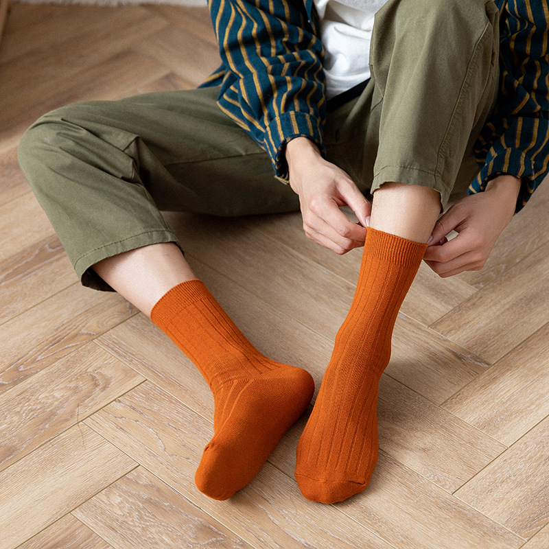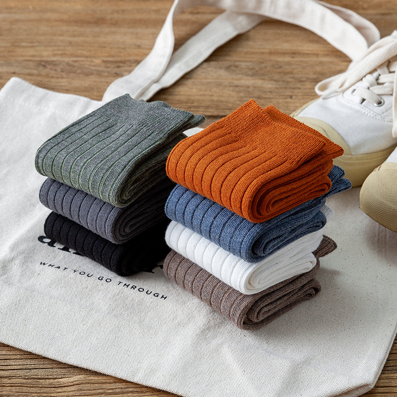 봄, 가을 신상 남성용 단색 중목 양말, 심플한 세로 줄무늬 핏줄 디자인, 대학 스타일, 다용도 스포츠 면 양말