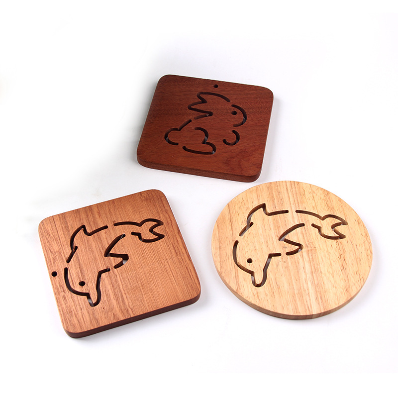 He Shi 홈 가구 고무 나무 사각 단열 매트 일본 차 코스터 단단한 나무 미끄럼 방지 매트 통나무 그릇 매트