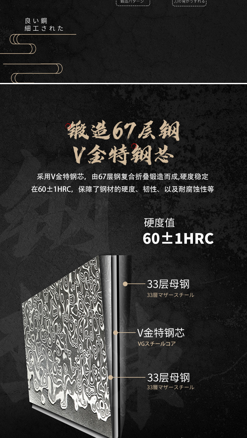 67 층 V 골드 다마스쿠스 부엌 칼 쇠고기 칼 요리사 칼 주방 칼 과일 칼 뼈 절단 스시 음식 선물 칼집
