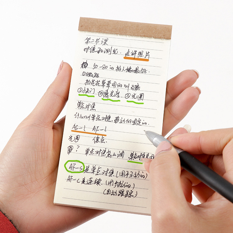 非常简洁实用的一款便签本~内页有四个款式,横线款、网格款,TODO和空白款。 每个款式有50张进口象牙白道林纸内页,厚实光滑,好写耐用。 纸质精良,对油墨的吸收性均匀,可做课堂小考、写字、备注、记事、提醒等用途。 封底有加厚牛皮纸,方便拿在手上书写,还可以轻松撕下来。 四个款式每款 装箱:600/箱,重量:约32kgs,整件拿货的请600倍数拍下,谢谢!