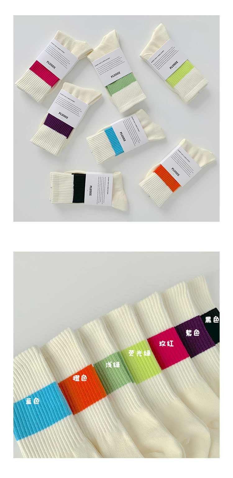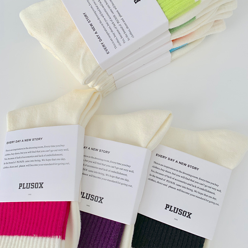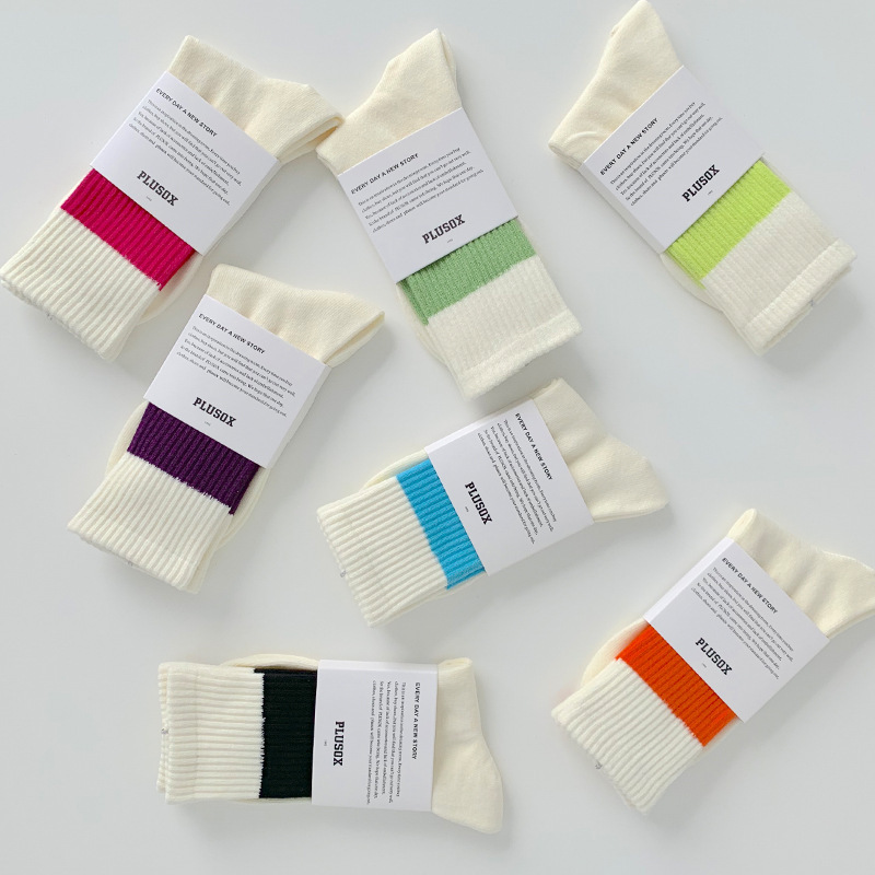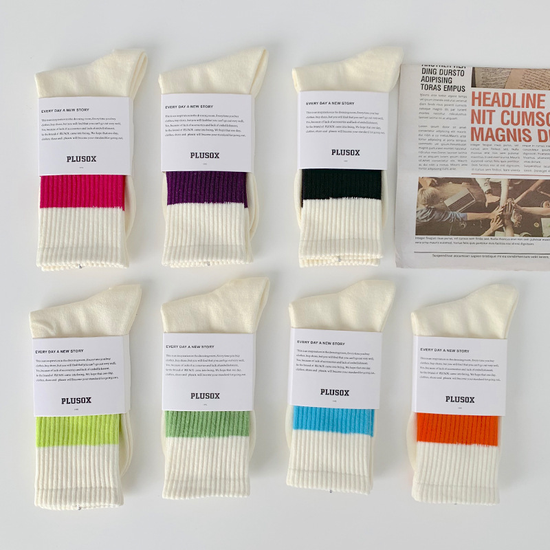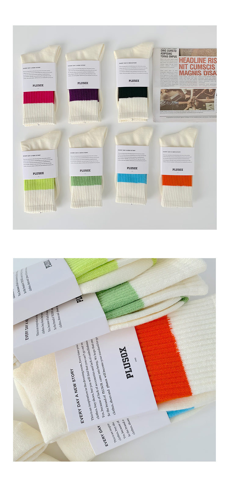 22 가을과 겨울 트렌디 브랜드 스포츠 양말 여섯 번째 삼촌 유 웬레 양말 같은 대비 색상 스트라이프 커플 미드 튜브 면 양말 여자 양말