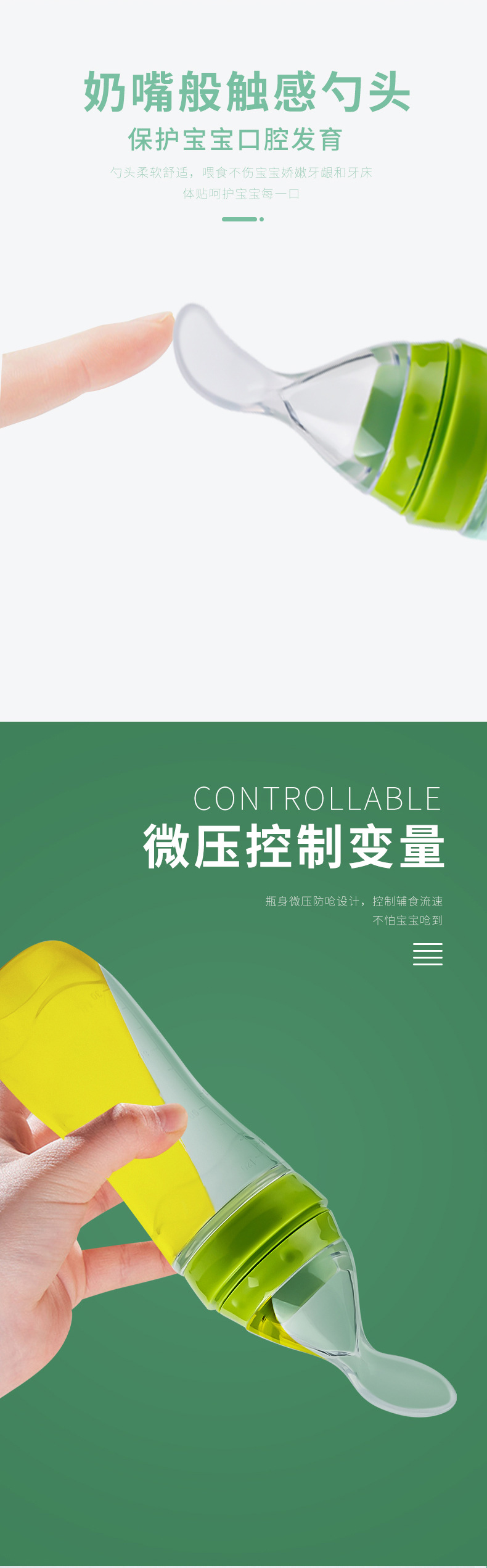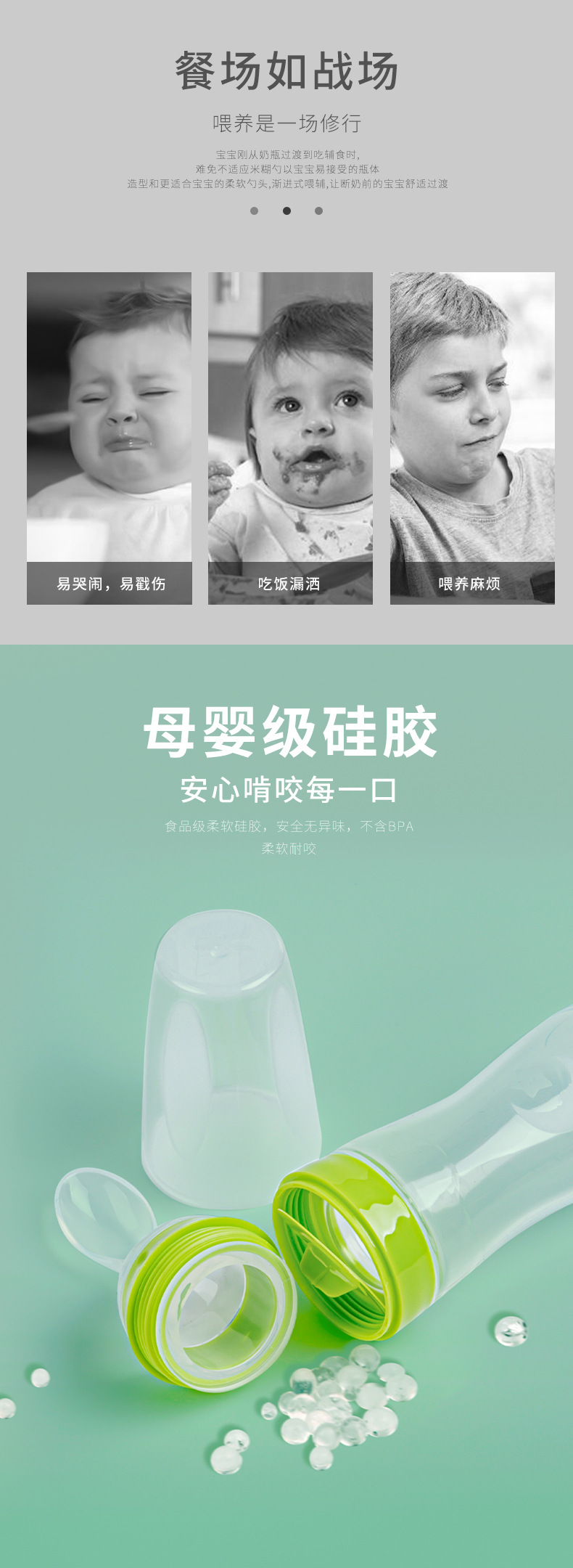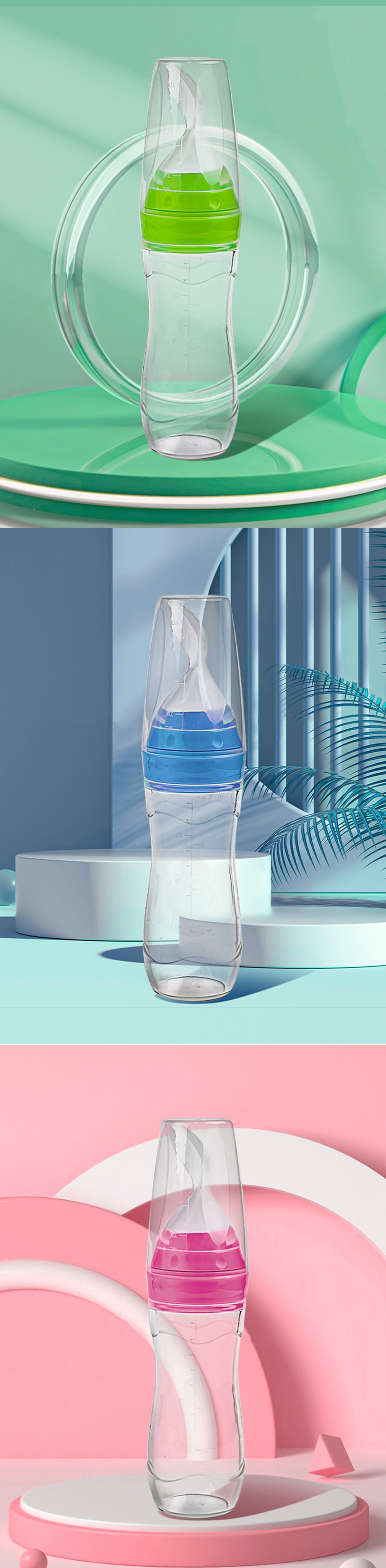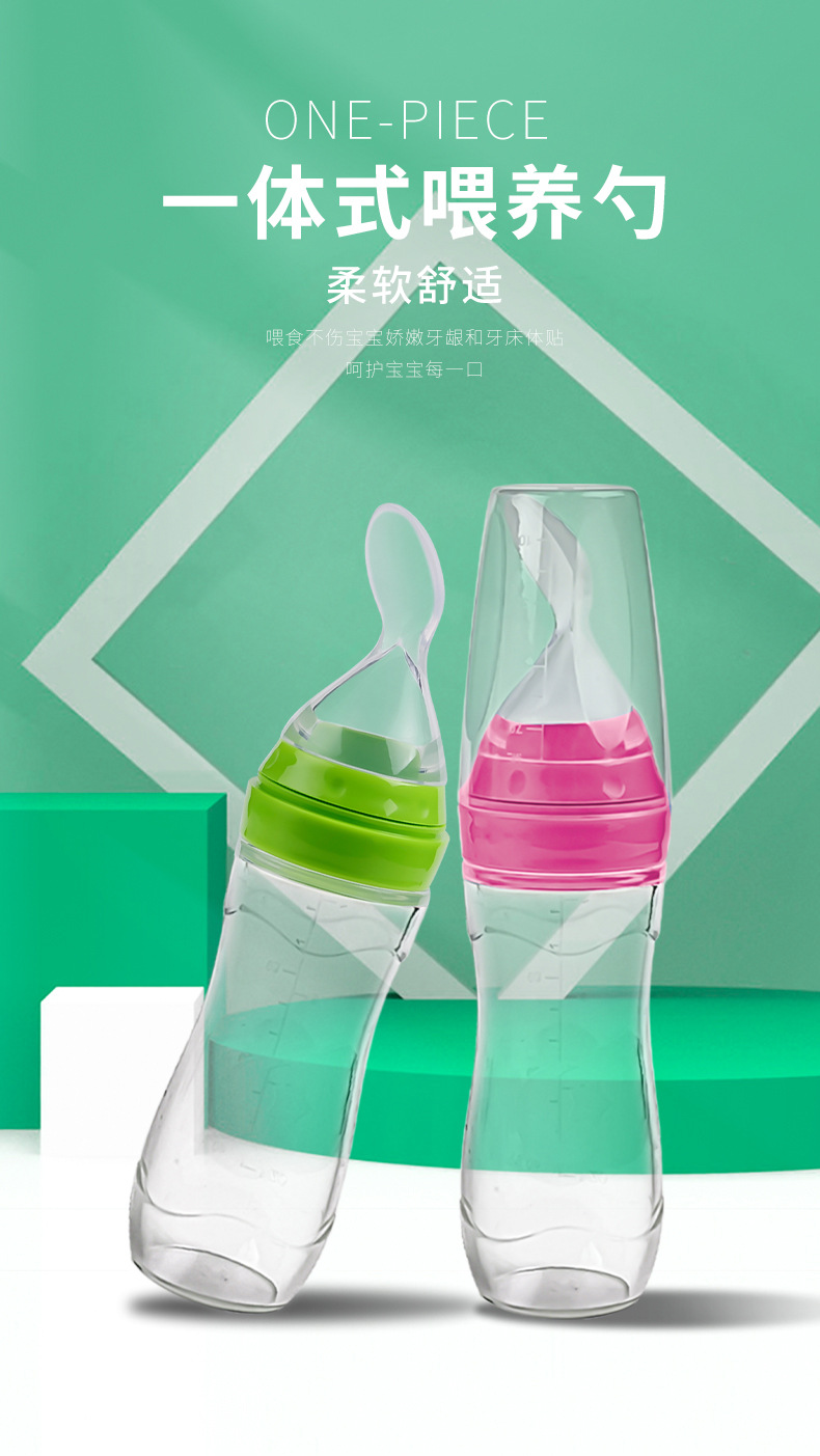 아기 실리콘 평평한 바닥 쌀 시리얼 병 아기 특수 수유 소프트 스푼 어린이 식품 보충 병 쌀 시리얼 스푼 식기 식품 등급