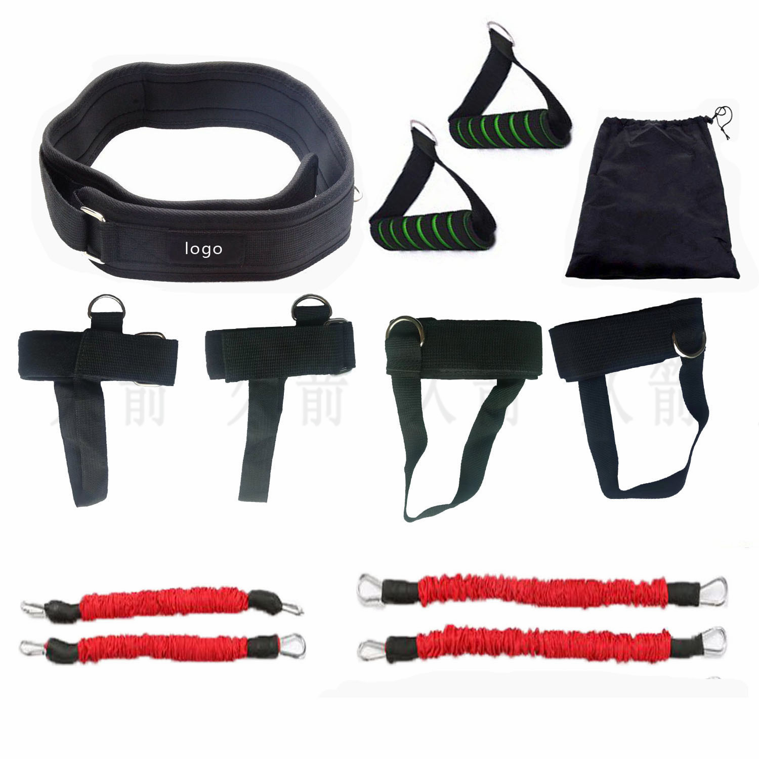 一个腰封、一对脚扣、一对手扣、一个束口袋、4根拉力绳、一对手柄(可选) 磅数可选 15磅:5*8*350mm 2条 5*8*450mm2条 20磅:5*9*350mm2条 5*9*450mm2条 25磅:6*10*350mm2条 6*10*450mm2条 30磅:7*11*350mm2条 7*11*450mm2条 35磅:6*11*350mm2条 6*11*450mm2条 |
