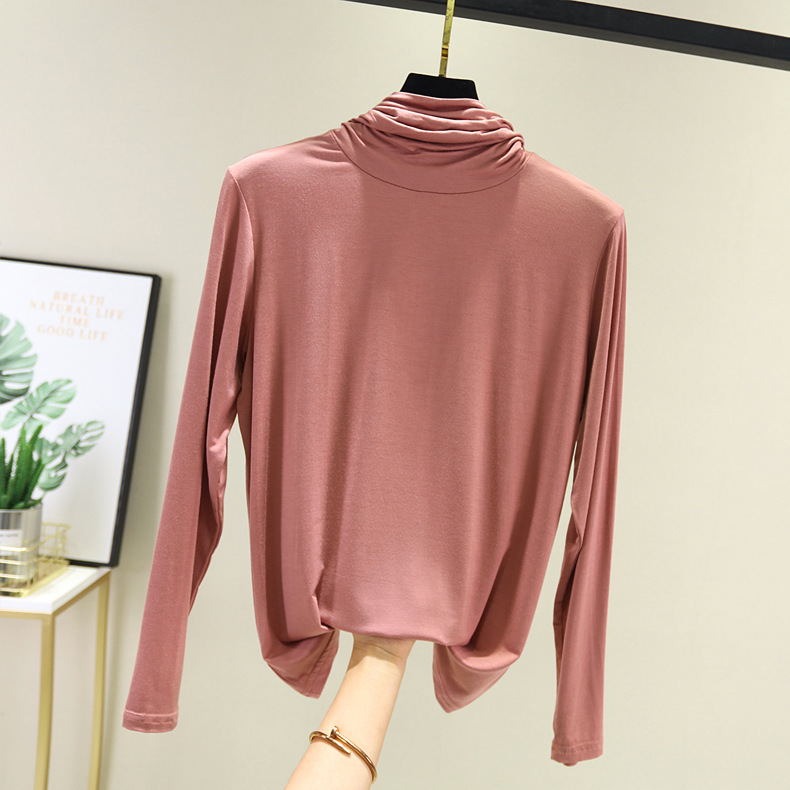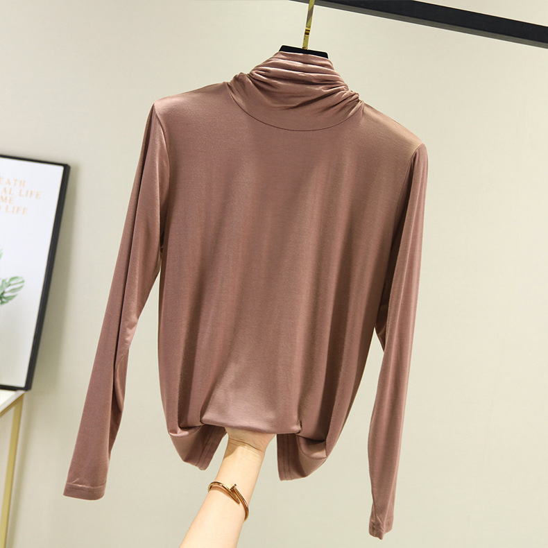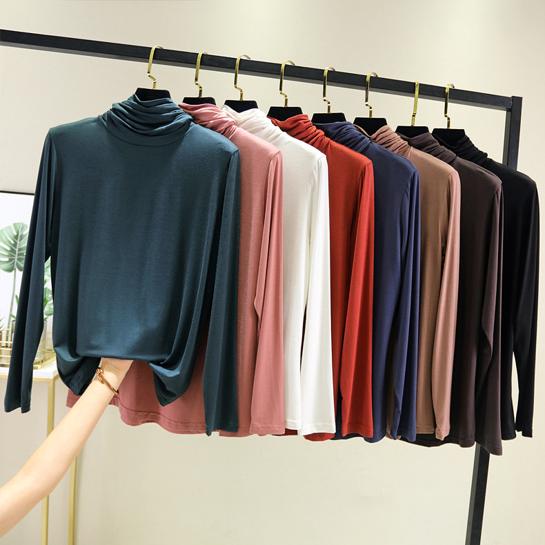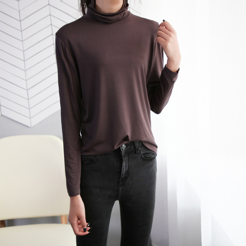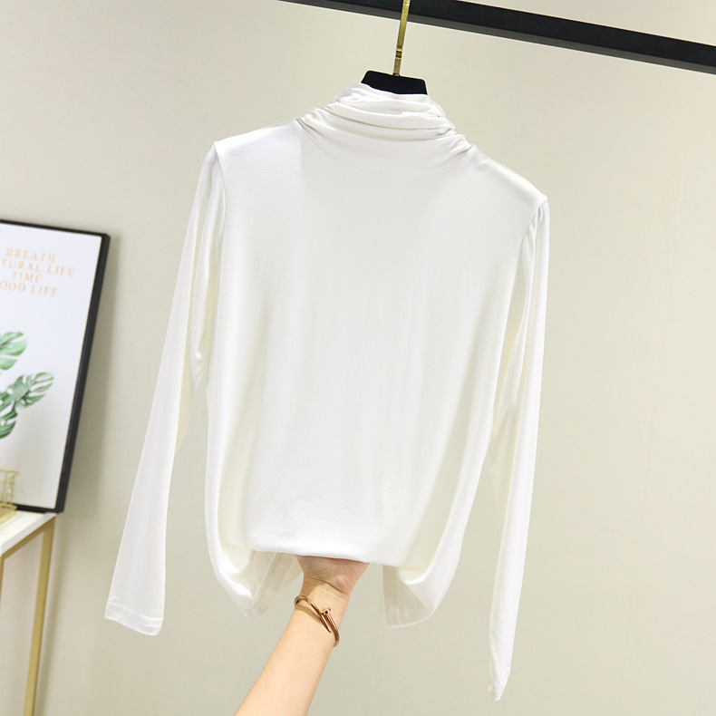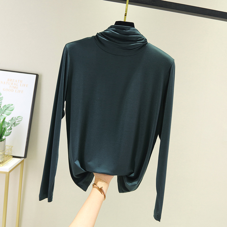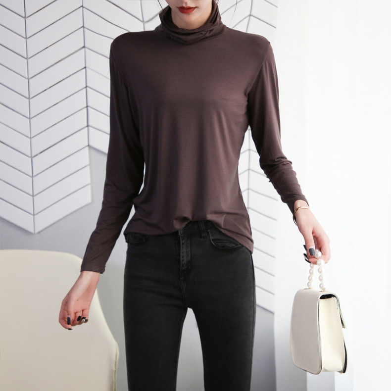 봄과 가을 하이 칼라베이스 셔츠 여성용 내부 세련된 모달 긴팔 티셔츠 슬림핏 슬리밍 쌓인 칼라 새로운 탑