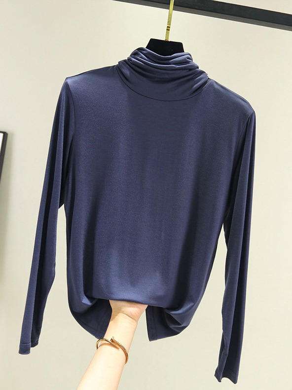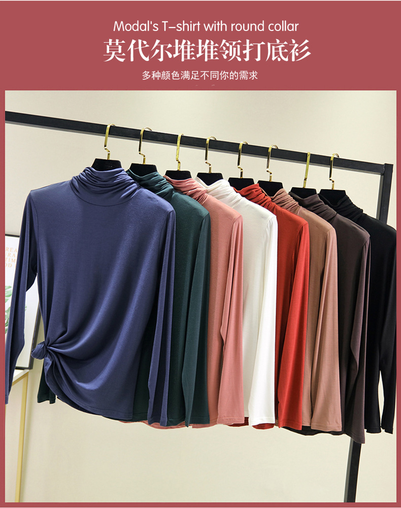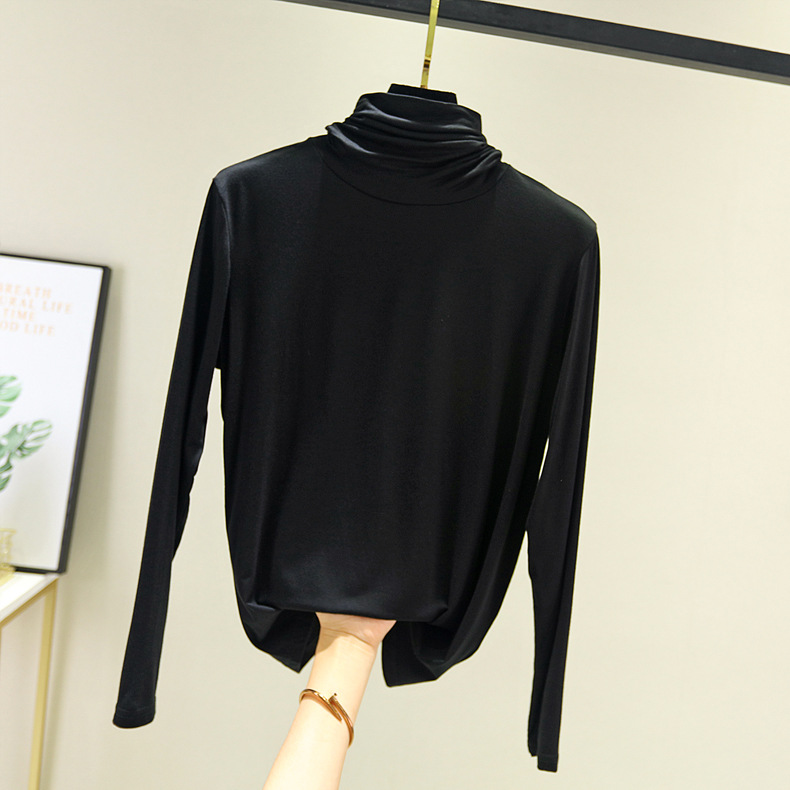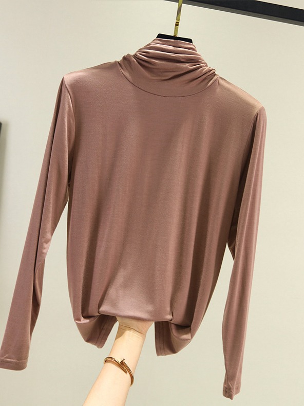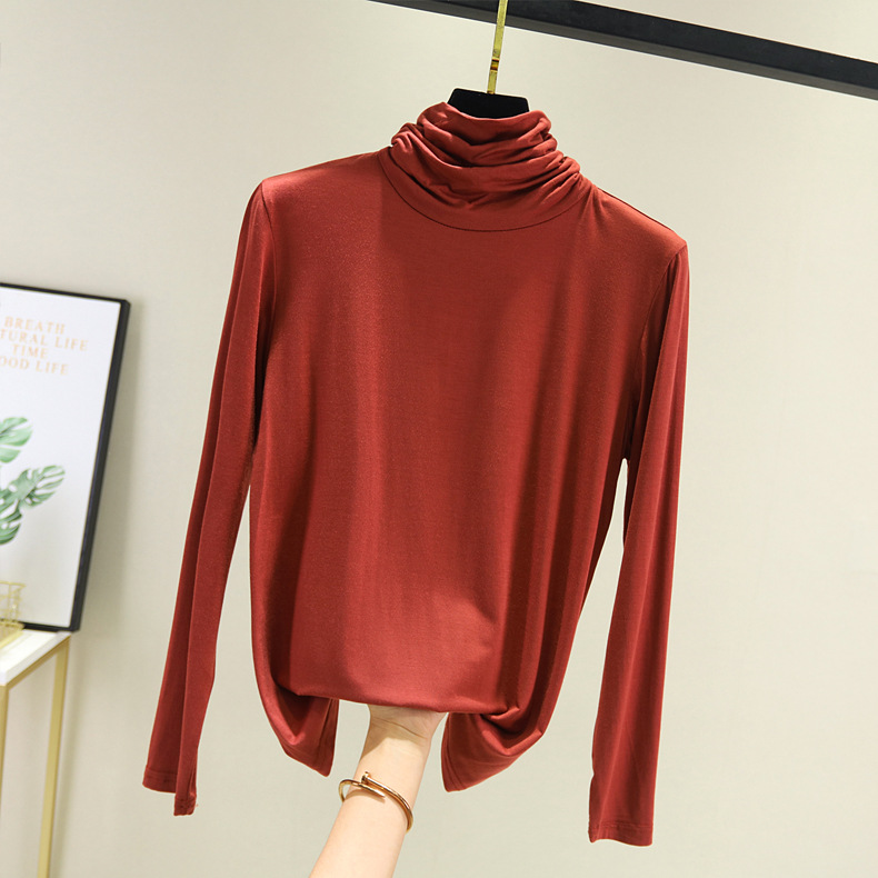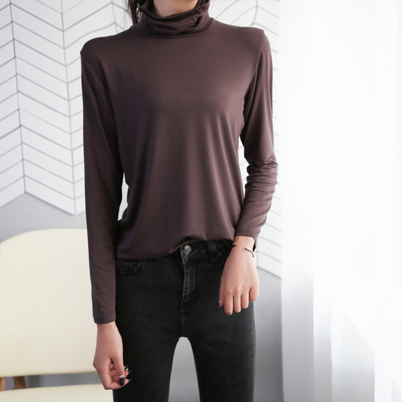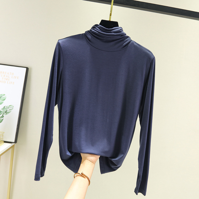 봄과 가을 하이 칼라베이스 셔츠 여성용 내부 세련된 모달 긴팔 티셔츠 슬림핏 슬리밍 쌓인 칼라 새로운 탑