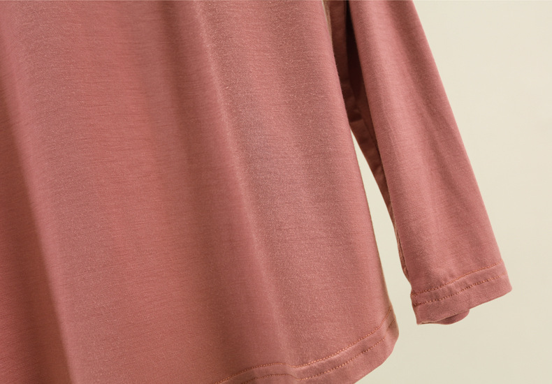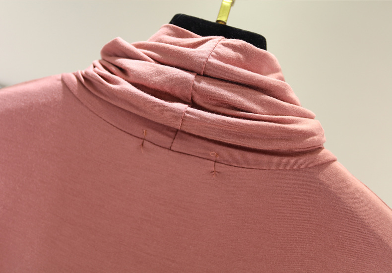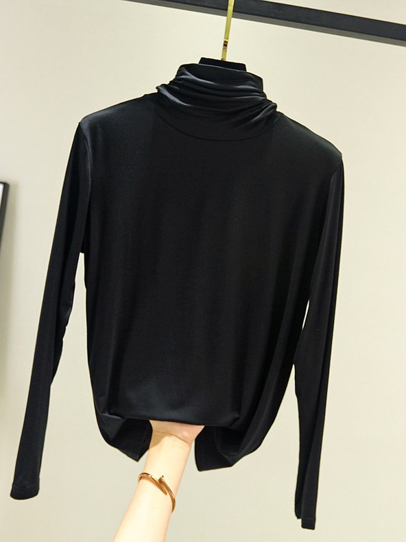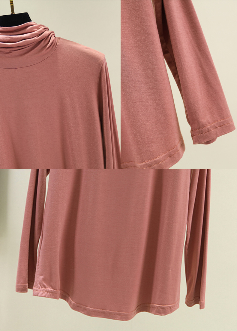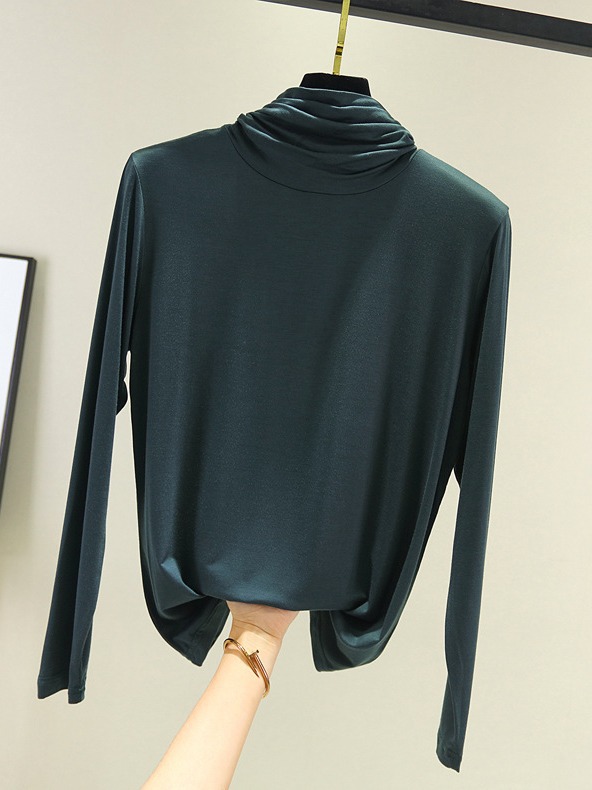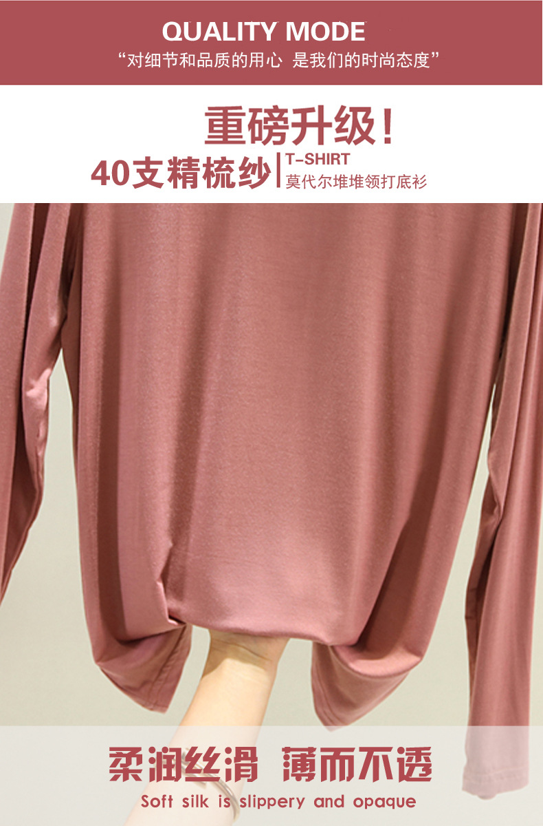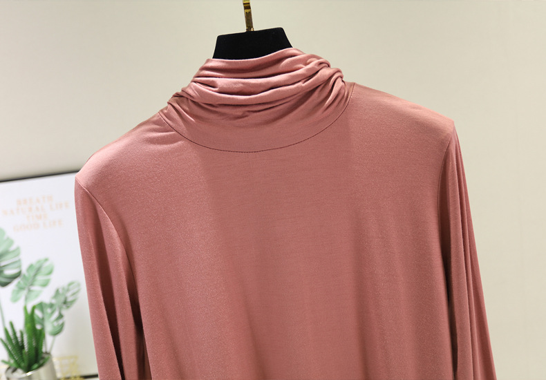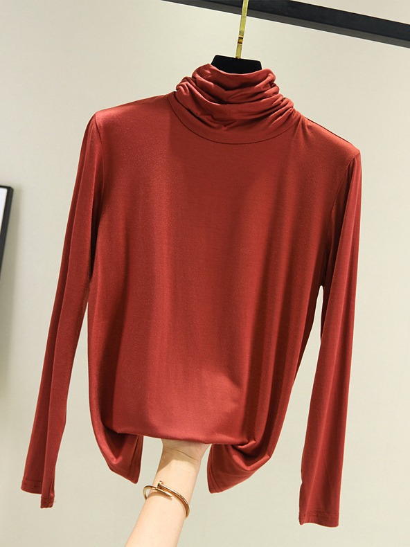 봄과 가을 하이 칼라베이스 셔츠 여성용 내부 세련된 모달 긴팔 티셔츠 슬림핏 슬리밍 쌓인 칼라 새로운 탑
