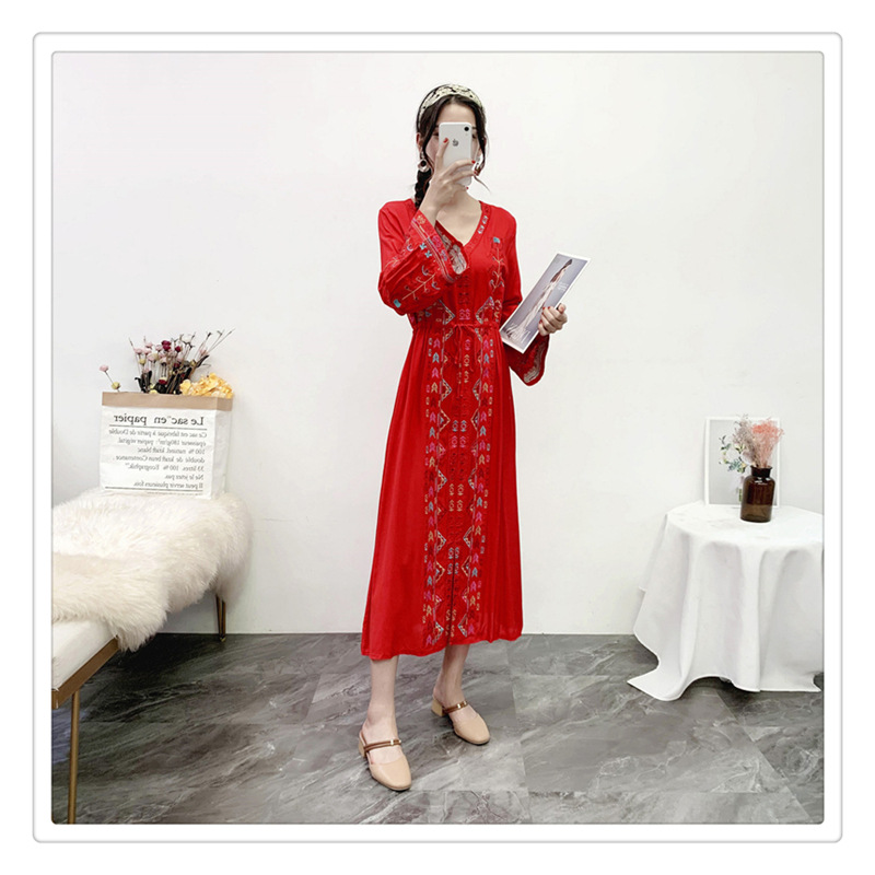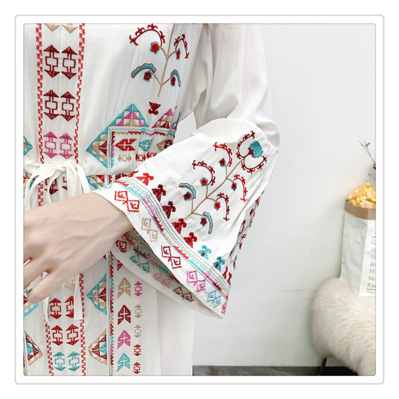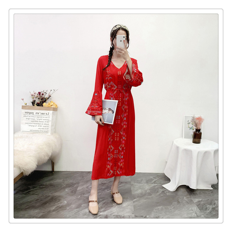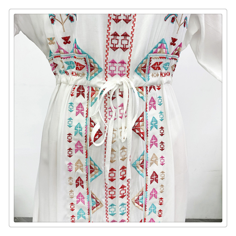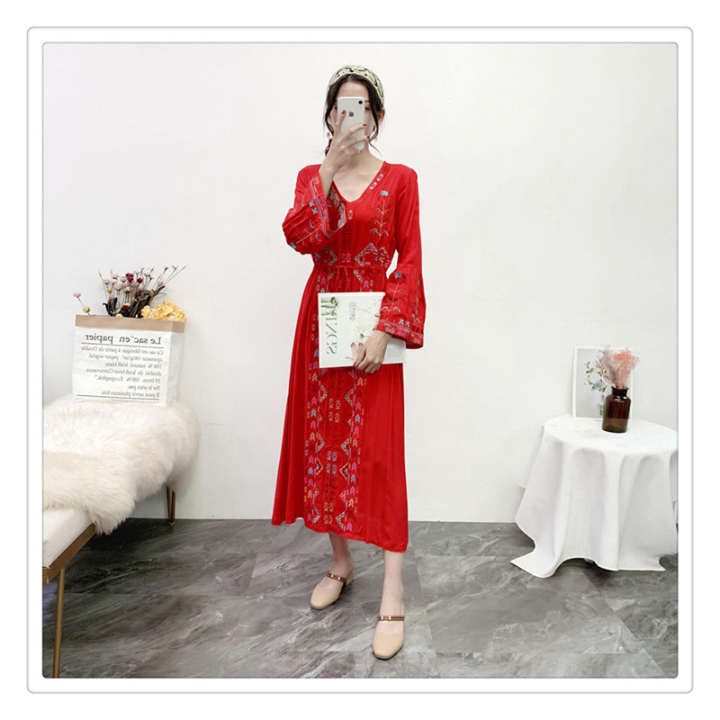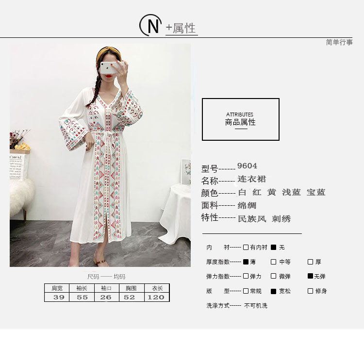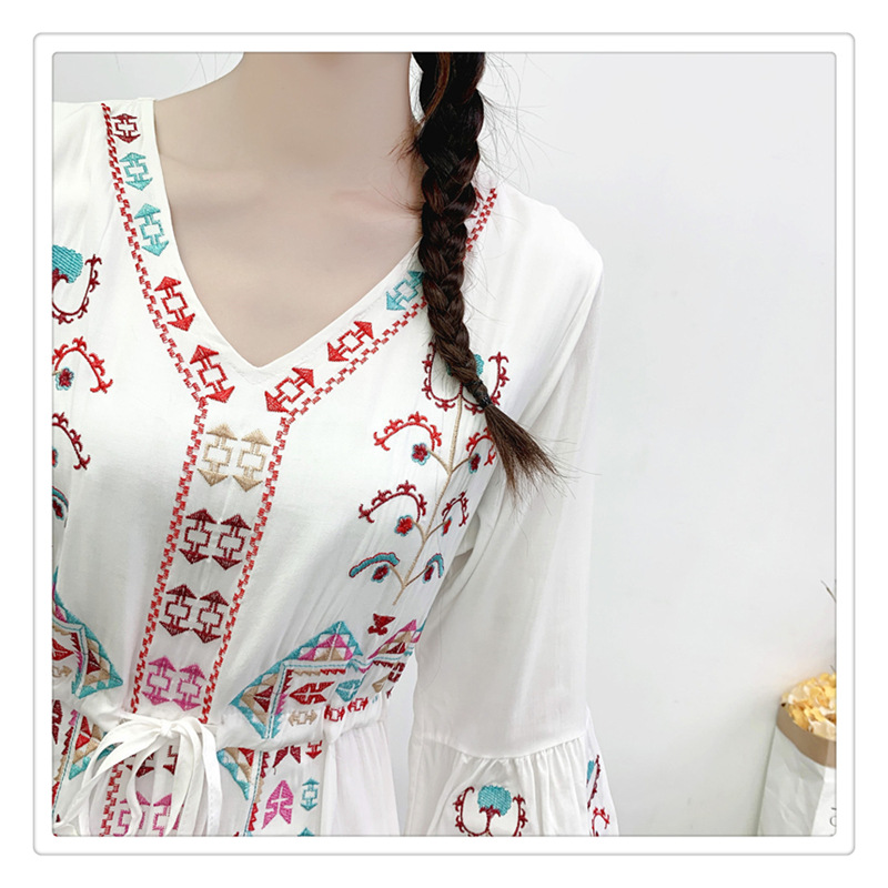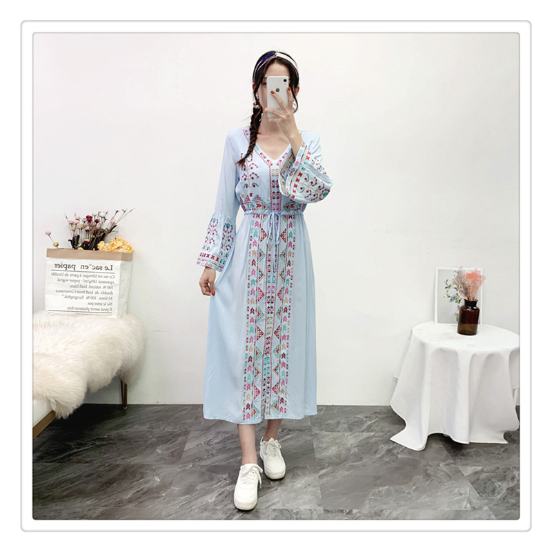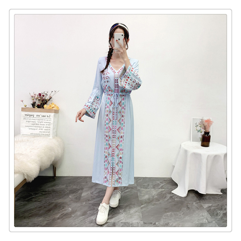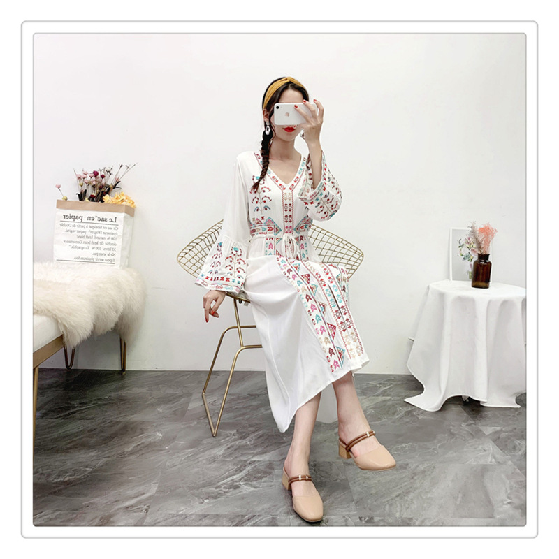 9604 여름 새로운 스타일 타이 홀리데이 비치 긴 원피스 여성의 보헤미안 민족 스타일 유럽과 미국 복고풍 자수 원피스