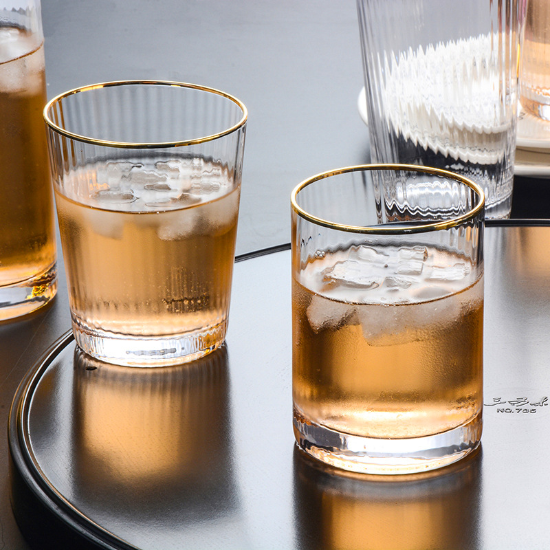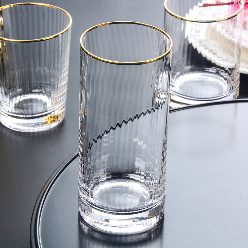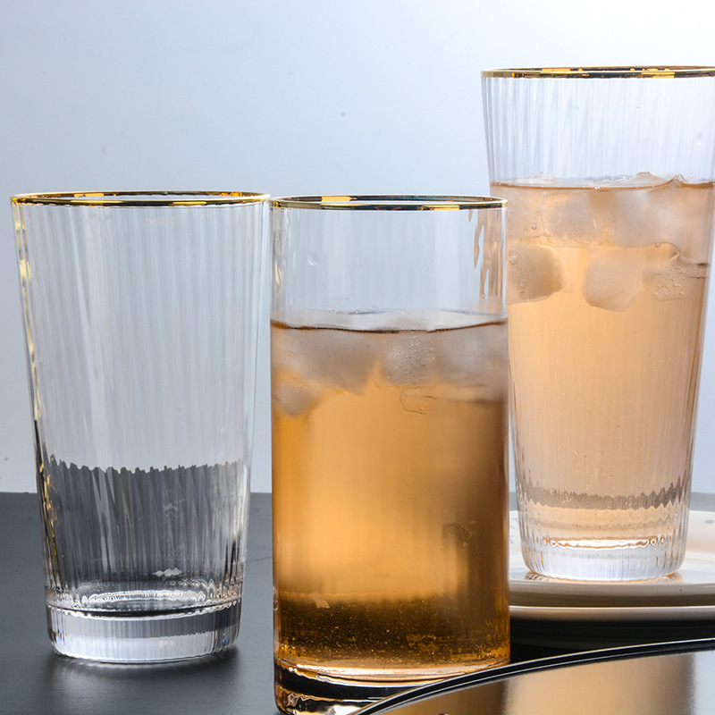일본식 크리 에이 티브 프놈펜 세로 패턴 유리 가정용 세로 줄무늬 음료 주스 컵 도매 유리 물 컵 식기