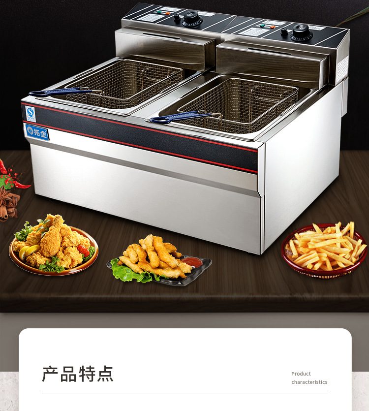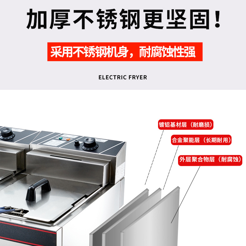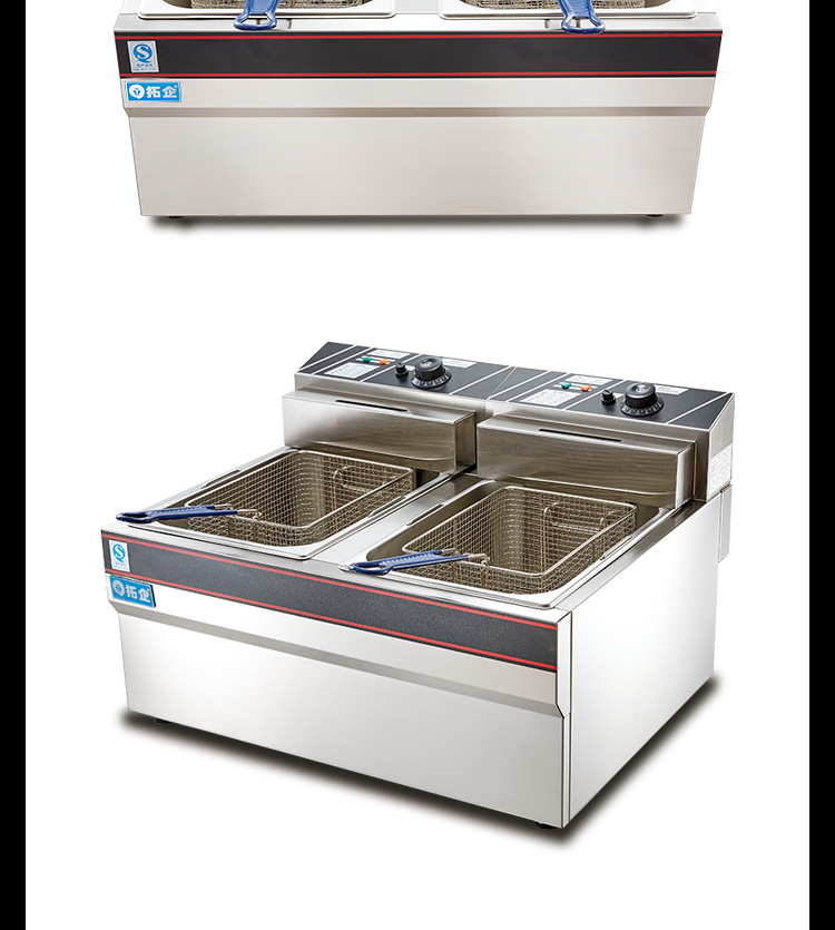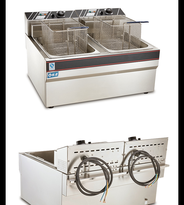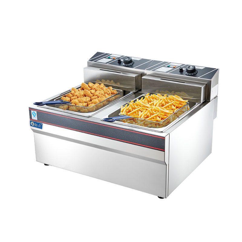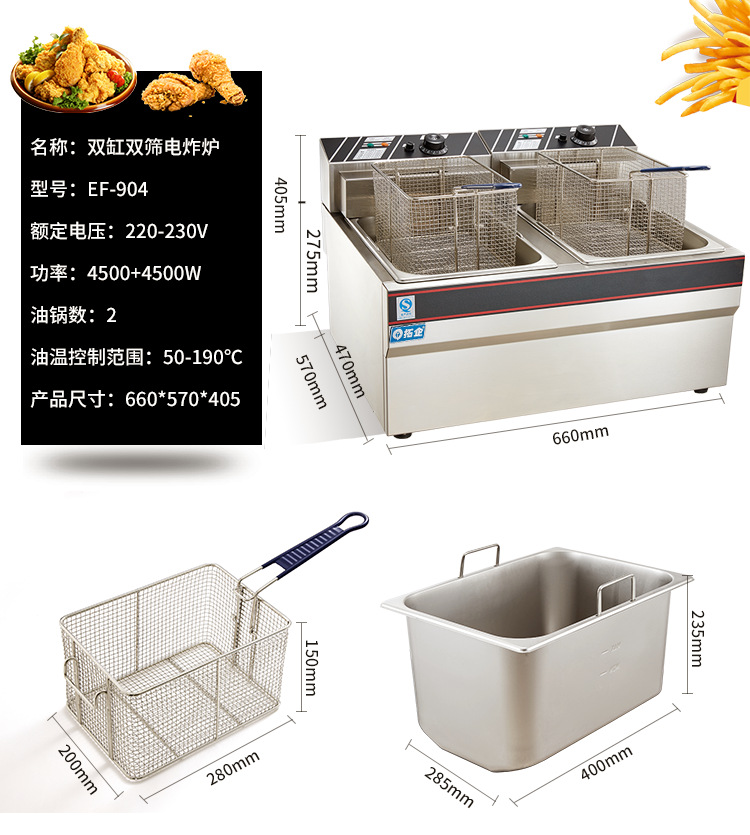 EF-904 전기 프라이어 상업용 데스크탑 더블 실린더 프라이어 후라이드 치킨 장비 후라이드 감자 칩 기계 대용량 노 고출력