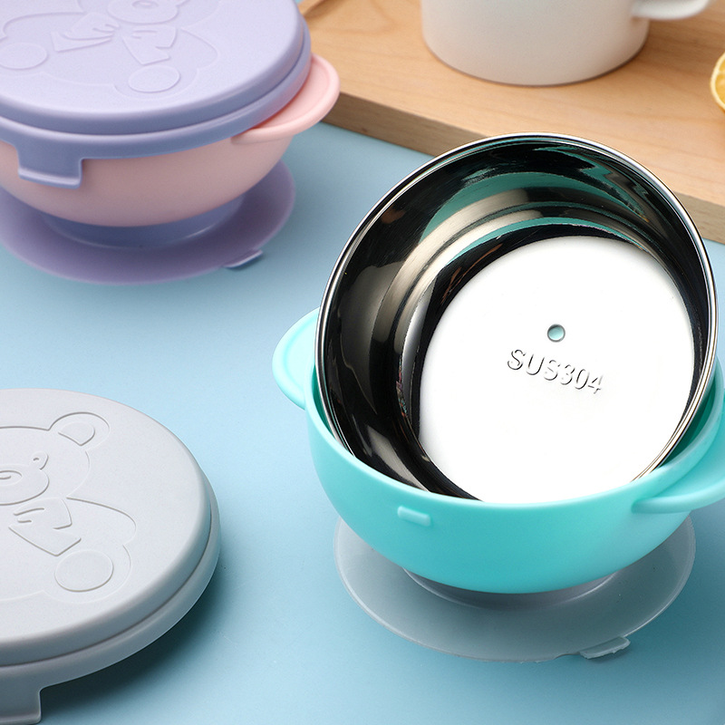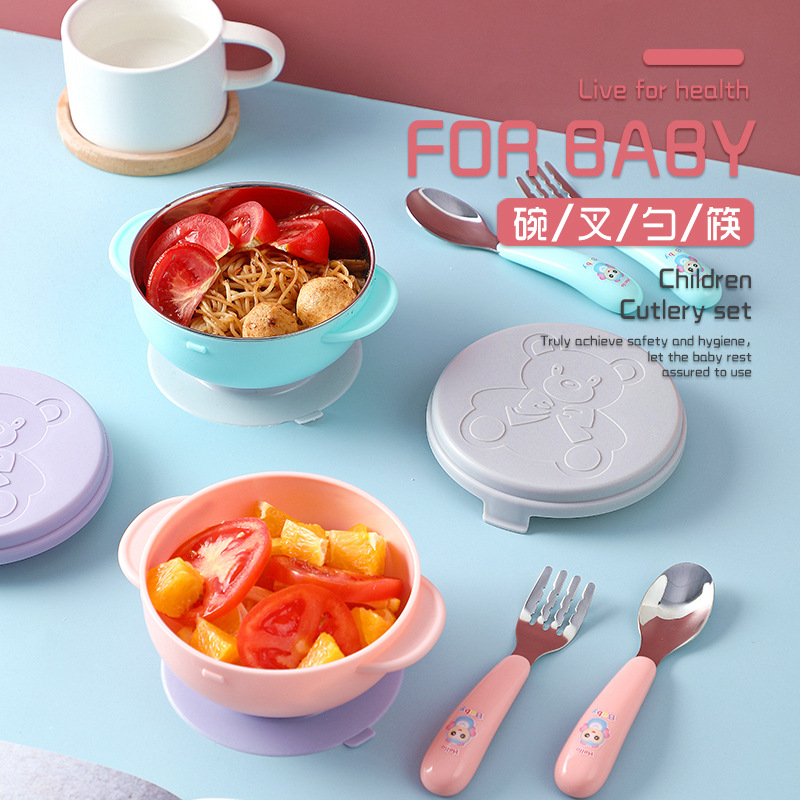 이유식 보충 흡입 그릇 아기 특수 낙하 방지 화상 방지 어린이 식당 그릇 스테인레스 스틸 아기 외출 식기