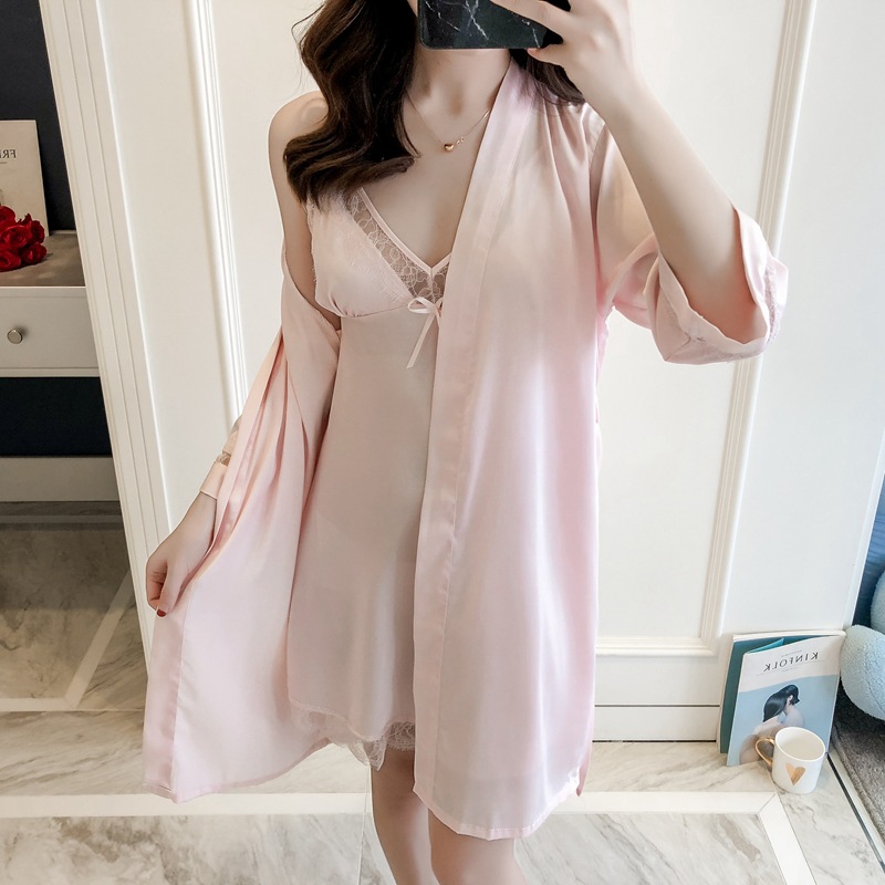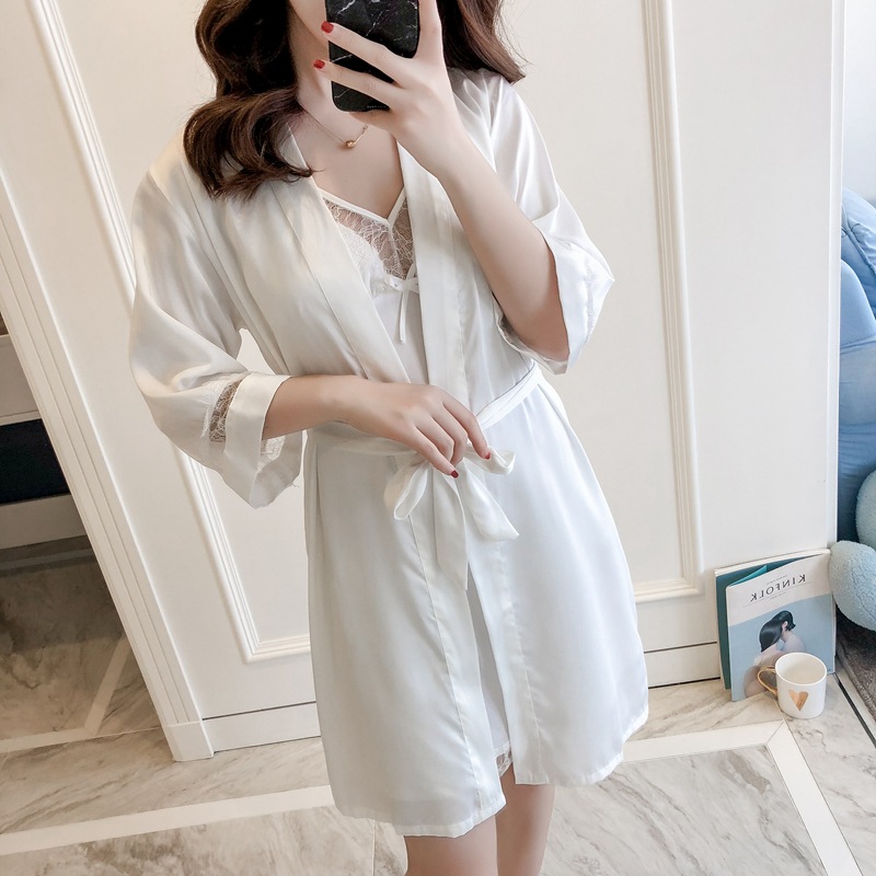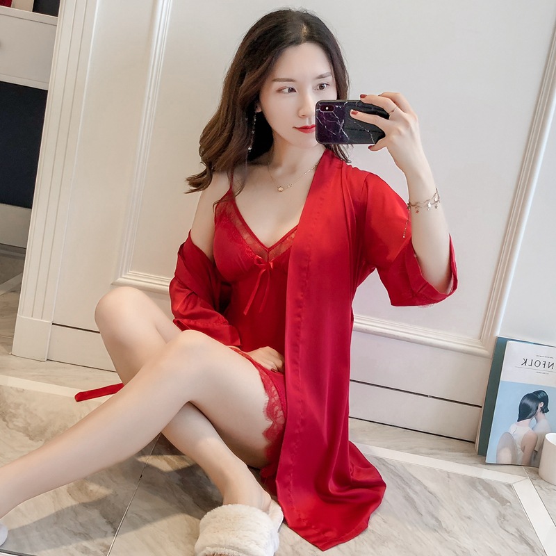 봄과 여름 잠옷 여성용 섹시 슬링 얇은 얼음 실크 한국 스타일 모여 작은 가슴 섹시한 열정 뜨거운 유혹 잠옷