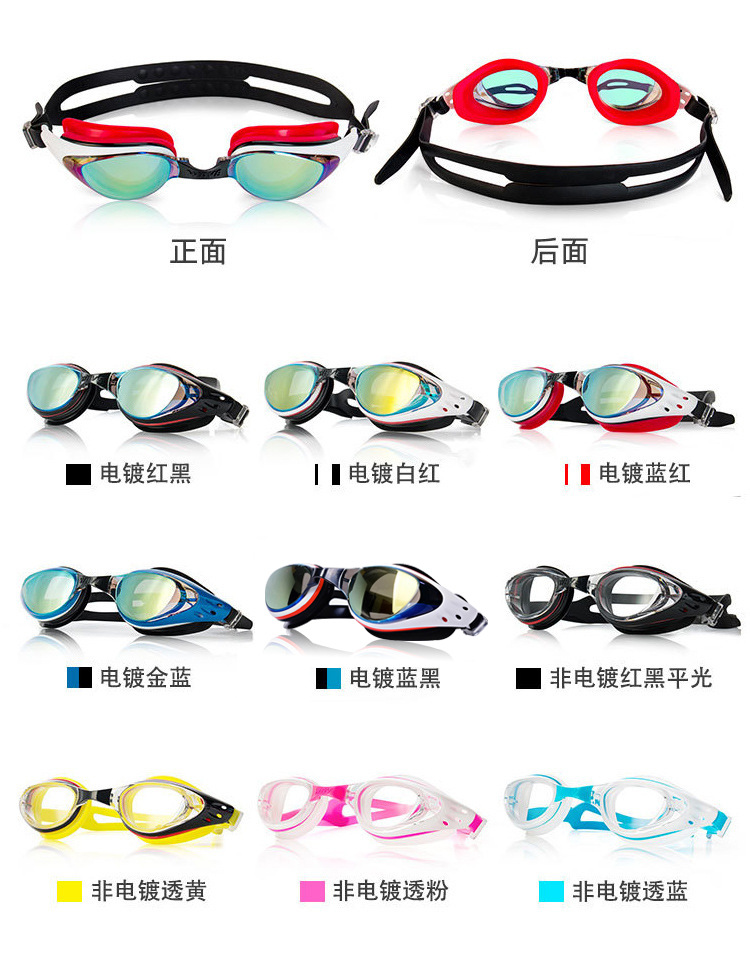 웨이브 전문 실리콘 방수 김서림 방지 도금 HD 남성과 여성 수영 고글 대형 프레임 수영 고글