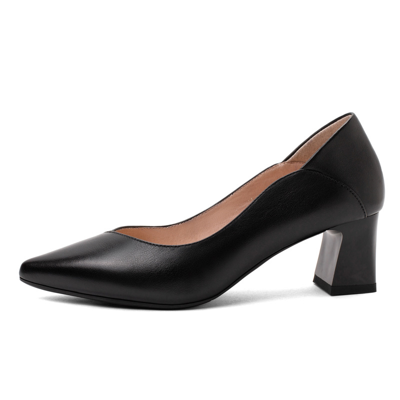 여성용 두꺼운 굽 단화, 중간 굽, 검정색, 정장용, 천연 가죽, 패셔너블하고 다재다능한, 직장용, 부드러운 밑창, 편안한, 하이힐