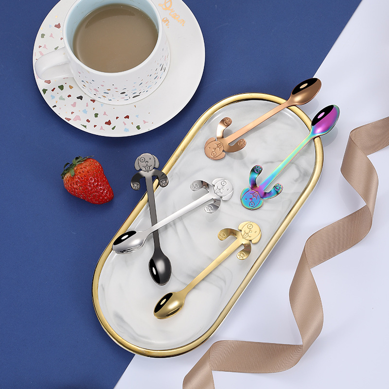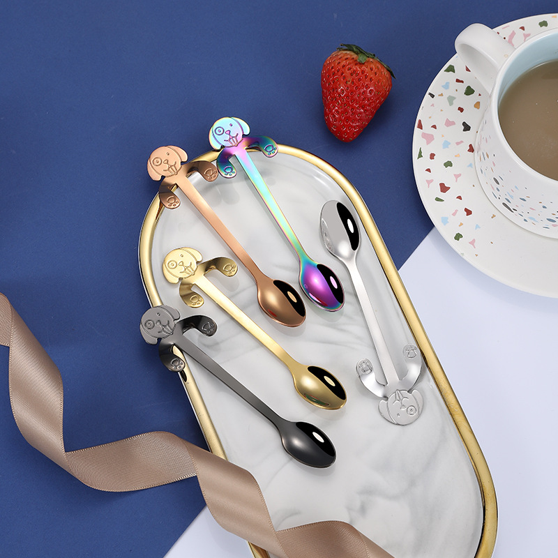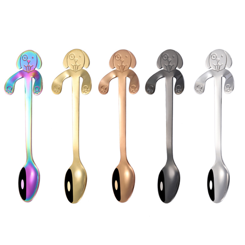 국경 간 창조적 인 304 스테인레스 스틸 강아지 스푼 커피 스푼 믹싱 스푼 만화 강아지 교수형 컵 차 스푼 어린이 스푼