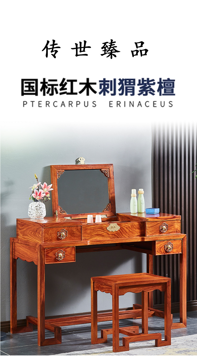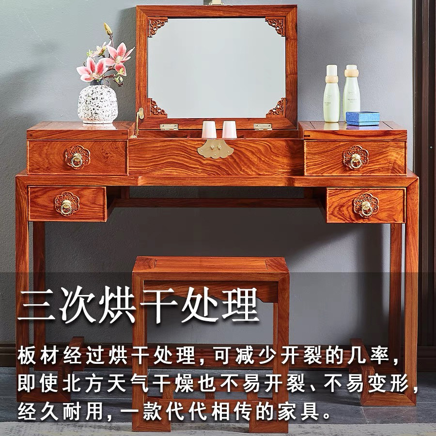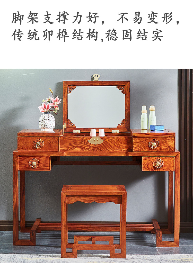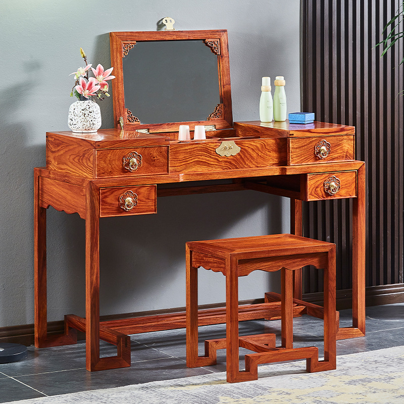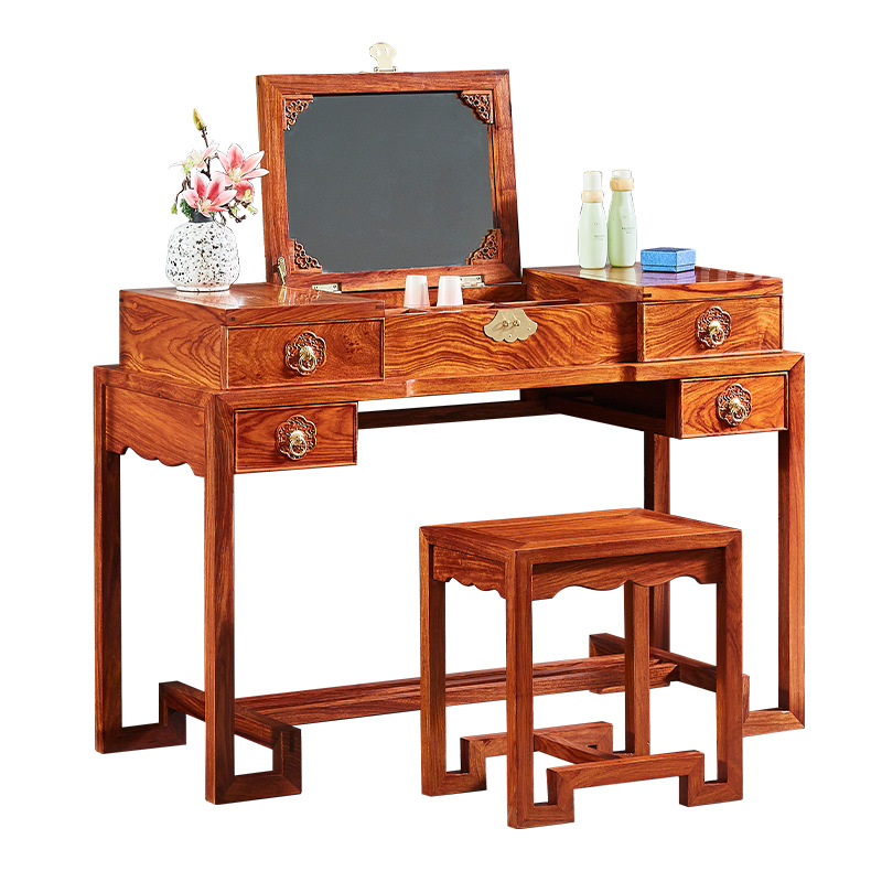 마호가니 드레싱 테이블 단단한 나무 고슴도치 빨간 백단향 새로운 중국 스타일 플립 거울 침실 작은 아파트 책상 로즈 우드 화장품 테이블