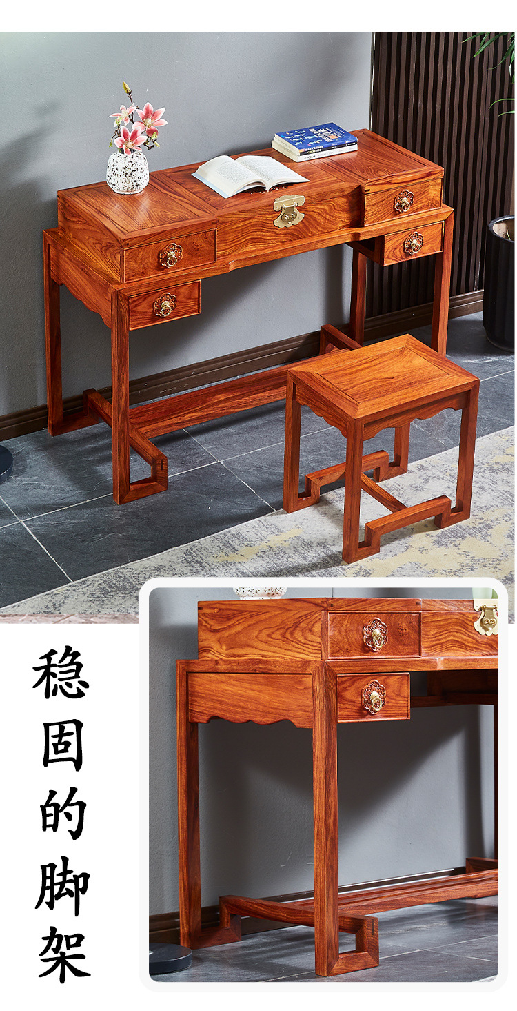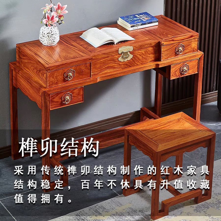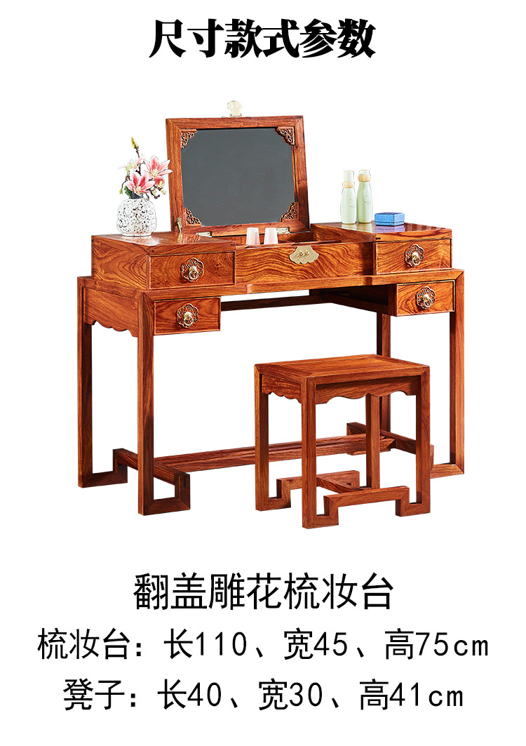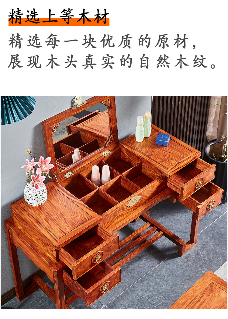마호가니 드레싱 테이블 단단한 나무 고슴도치 빨간 백단향 새로운 중국 스타일 플립 거울 침실 작은 아파트 책상 로즈 우드 화장품 테이블