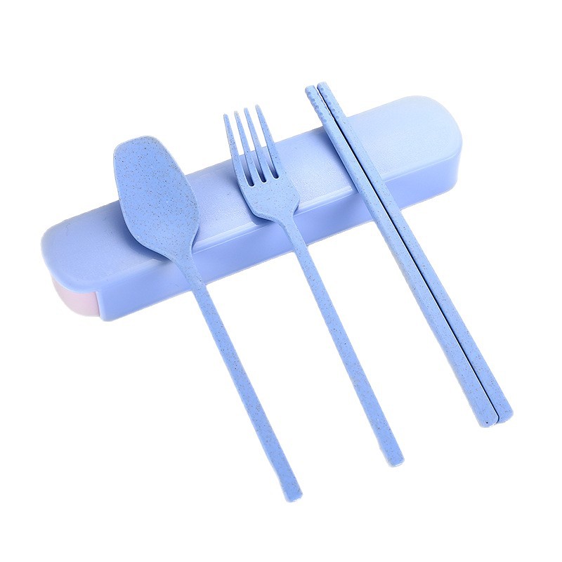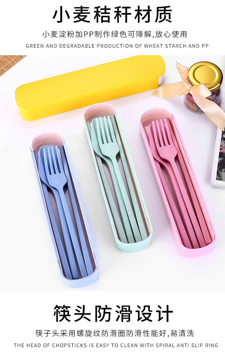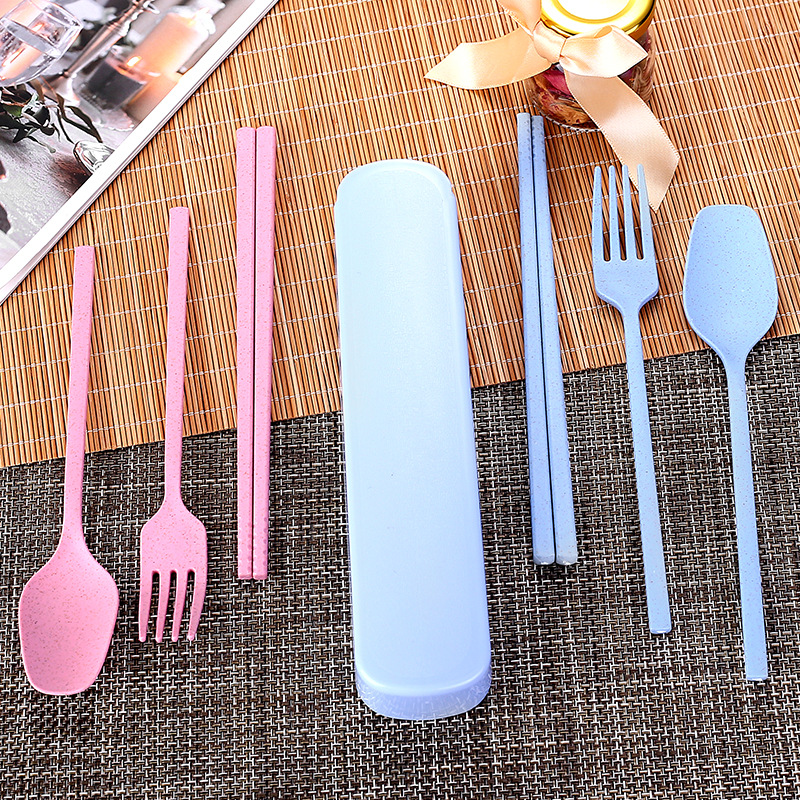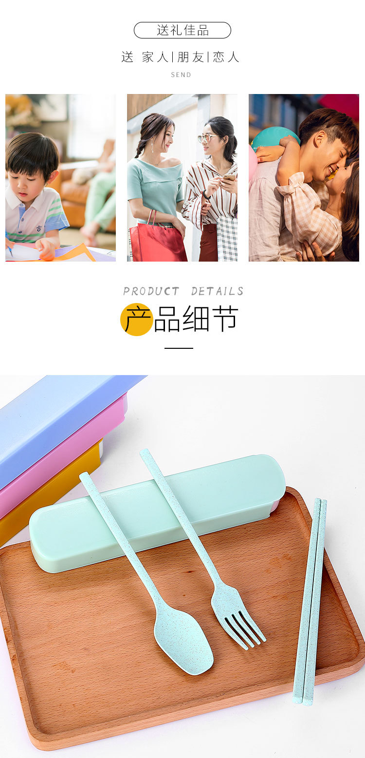 국경 간 밀짚 휴대용 식기 풀 아웃 박스 3 피스 세트 가정용 어린이 숟가락 포크 젓가락 선물 세트