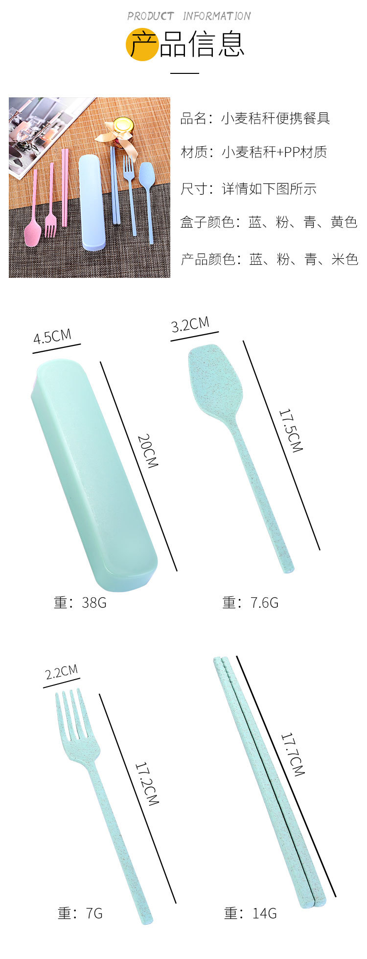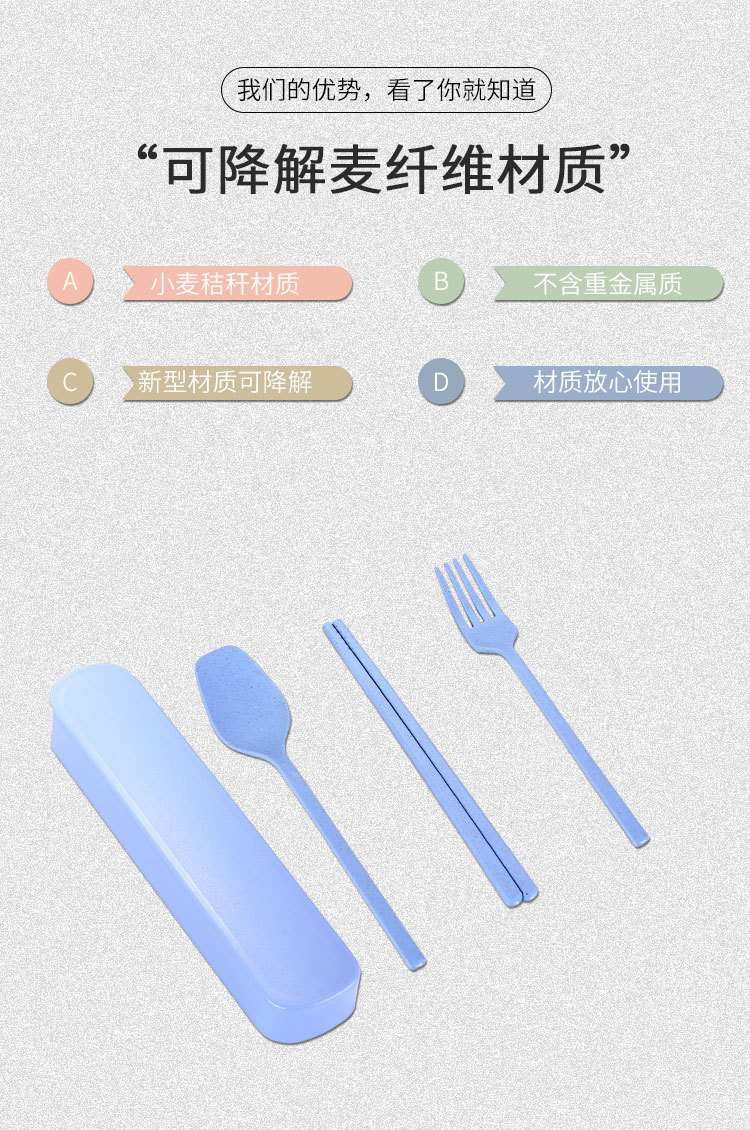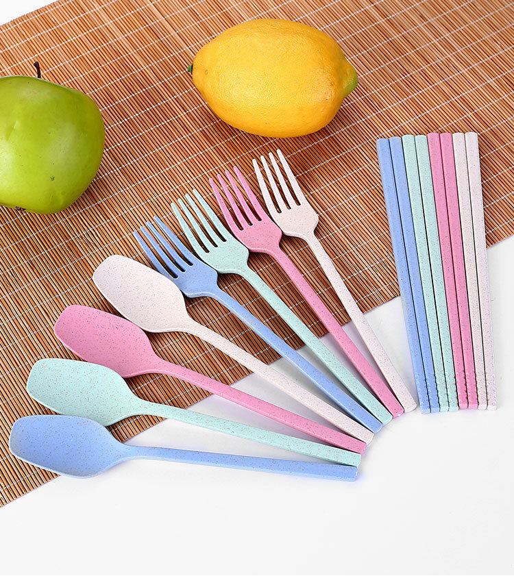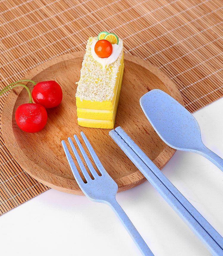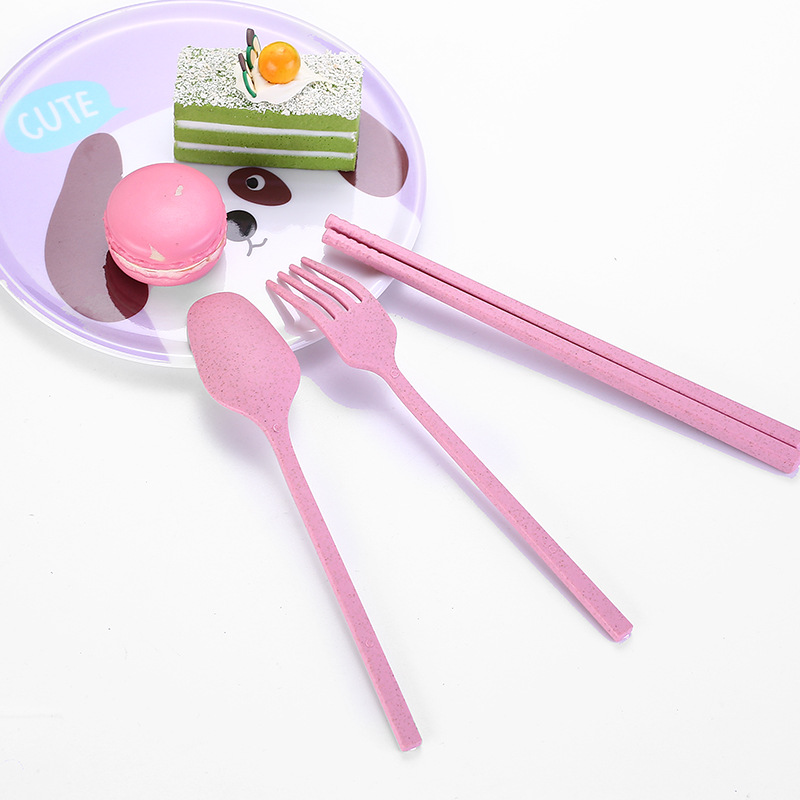 국경 간 밀짚 휴대용 식기 풀 아웃 박스 3 피스 세트 가정용 어린이 숟가락 포크 젓가락 선물 세트