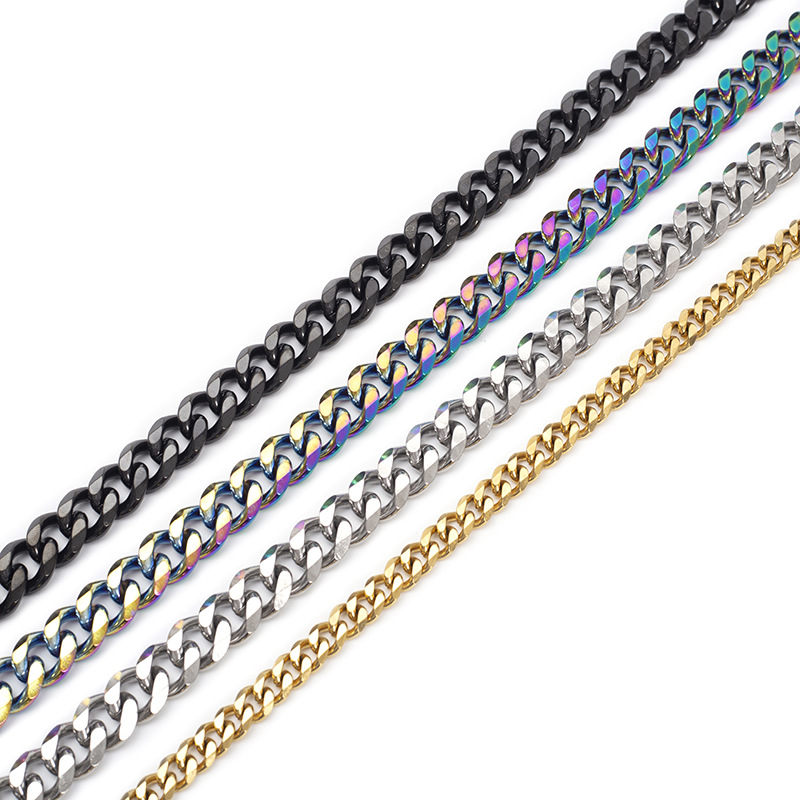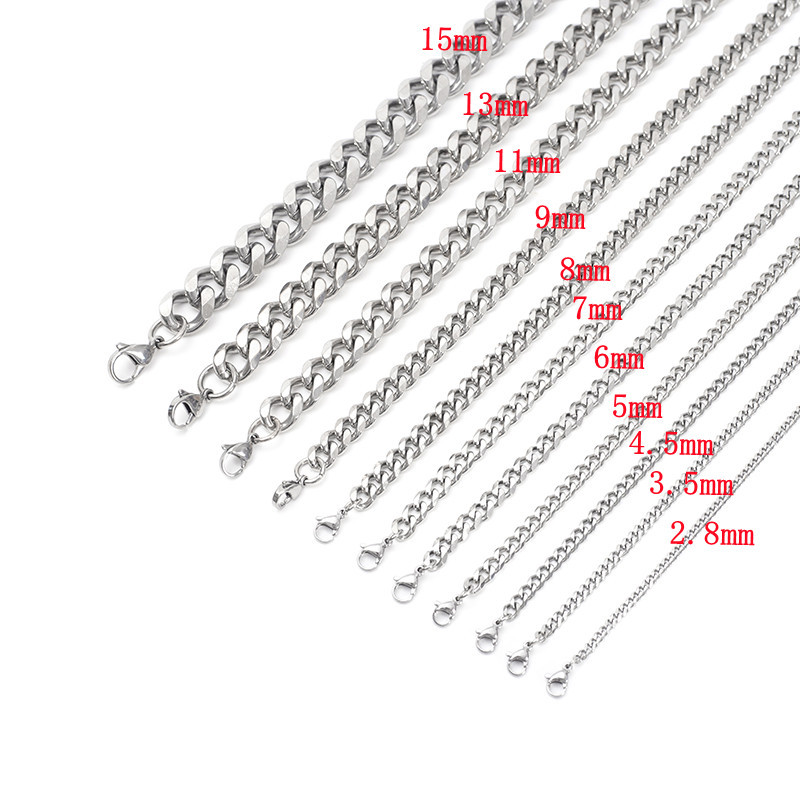 专业生产德国钛钢316、316L、304等材质链条,不锈钢材质产品特点具有不易过敏不掉色,款式休闲大方、时尚。本厂生产的产品款式有:十字链、锤十字链、双扣十字链、龙骨链,圈仔链、双圈链、钮链(侧身链)、正反链,元宝链,牛仔链,侧身磨链(2面磨、4面磨、6面磨、8面磨、圆磨)、双织侧身链(2面磨、4面磨、6面磨、圆磨)、波珠链、珍珠链、盒仔链(威尼斯链)、麻花链、玉米链、圆网链、灯笼链、猪笼链、狐尾链、钻石链、菠萝纹侧身链、菠萝纹侧身磨链、拉花链、压花链、压花双扣链、方线链、方线双扣链、卜线链、三角线十字链、三角线双扣链、蛇链、焊口链、冲压链、铸造链、手工链、NK链、韩国链,机织链等。规格齐全:0.3-6.0mm线径,表面为电解抛光,亦可(ROHS)真空电镀各种颜色(金色,黑色,玫瑰金,炫丽七彩),腐蚀工艺处理、激光打标(LOGO)更显美观、大方、特别!