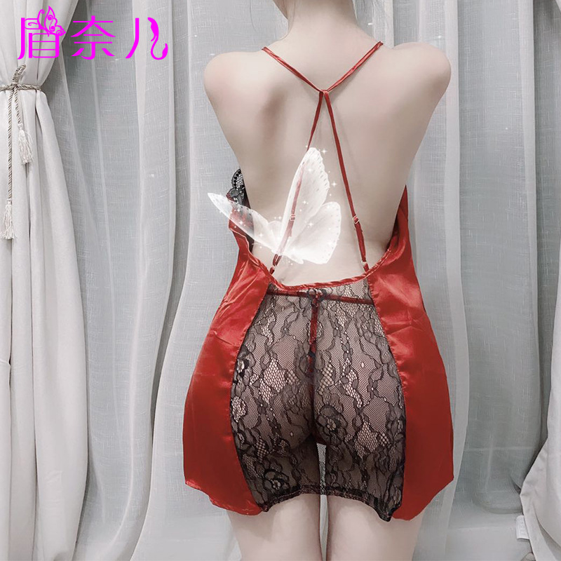 새로운 숙녀 등이없는 섹시한 란제리 깊은 V 섹시한 새틴 잠옷 잠옷 스트랩 레이스 잠옷 머리카락의 세대