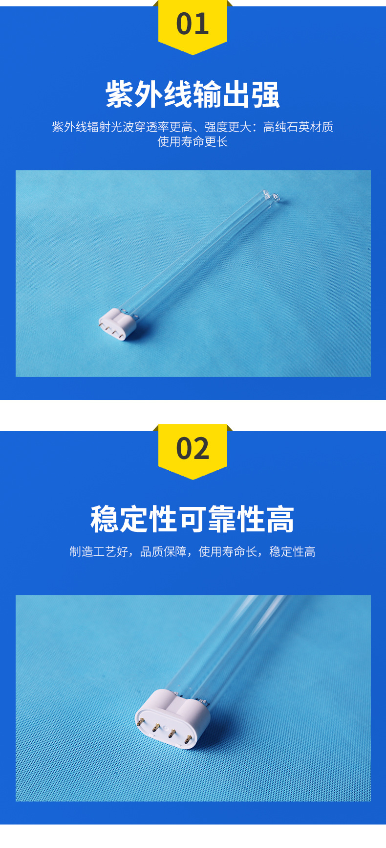 탁상용 H형 자외선 살균 UV 광분해 램프 튜브 살균 램프 튜브 소독 기계 공기 청정기 UV 램프