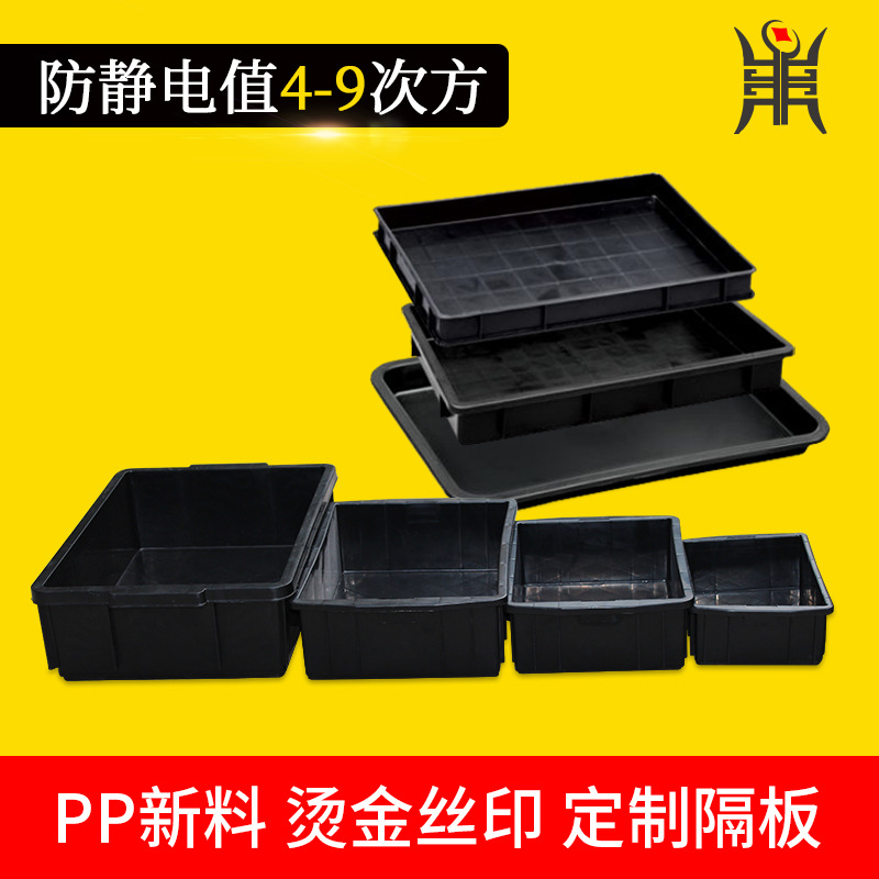 정전기 방지 플라스틱 사각 플레이트 검은 두꺼운 부품 상자 평면 재료 상자 전자 부품 대형 팔레트 회전율 상자
