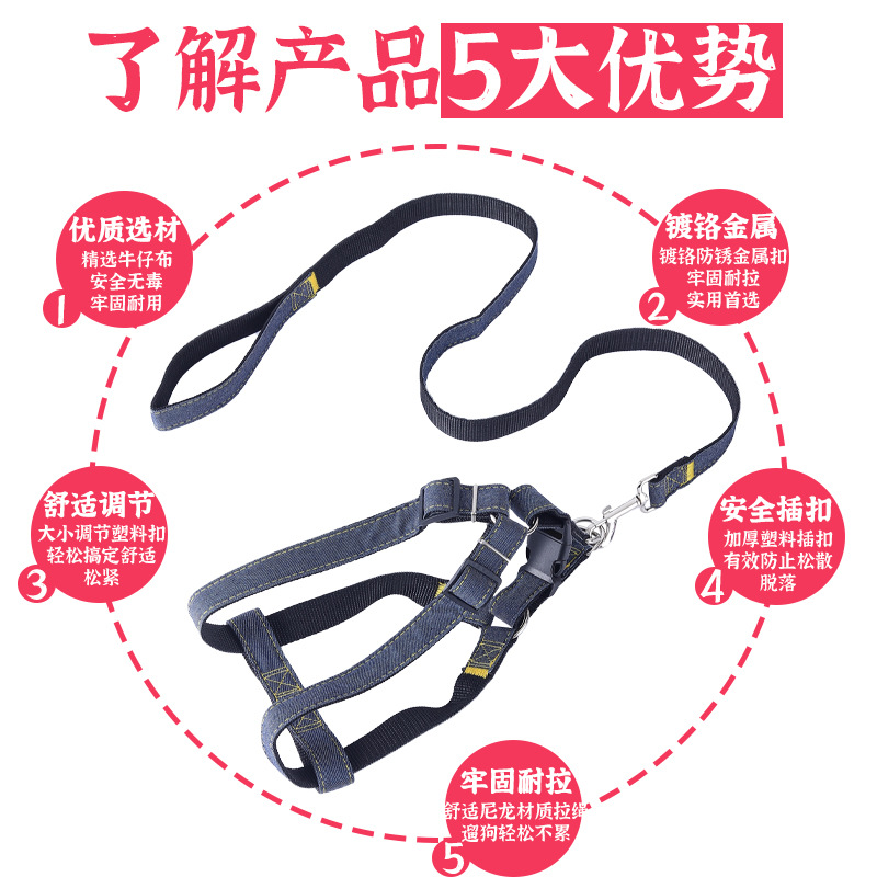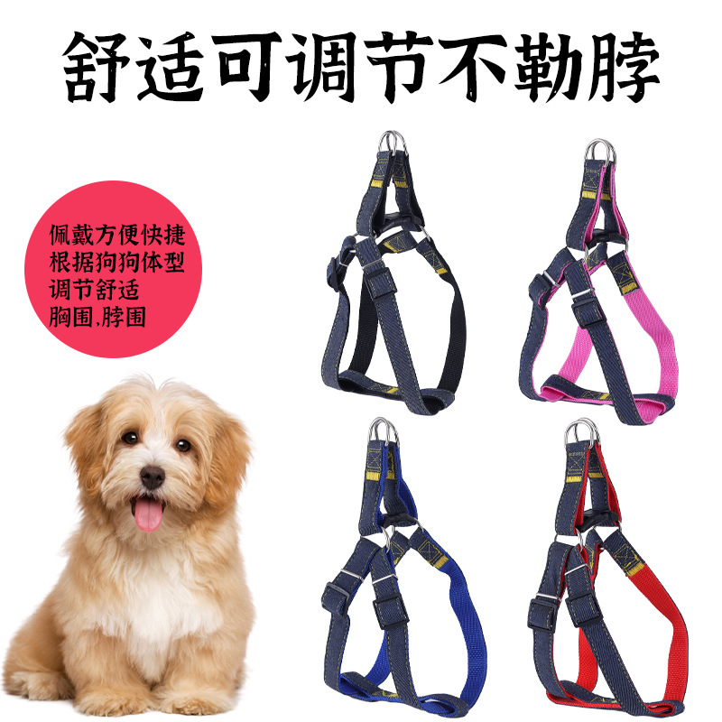 现货批发宠物狗绳 加厚耐磨抗咬 牛仔缝布胸背带