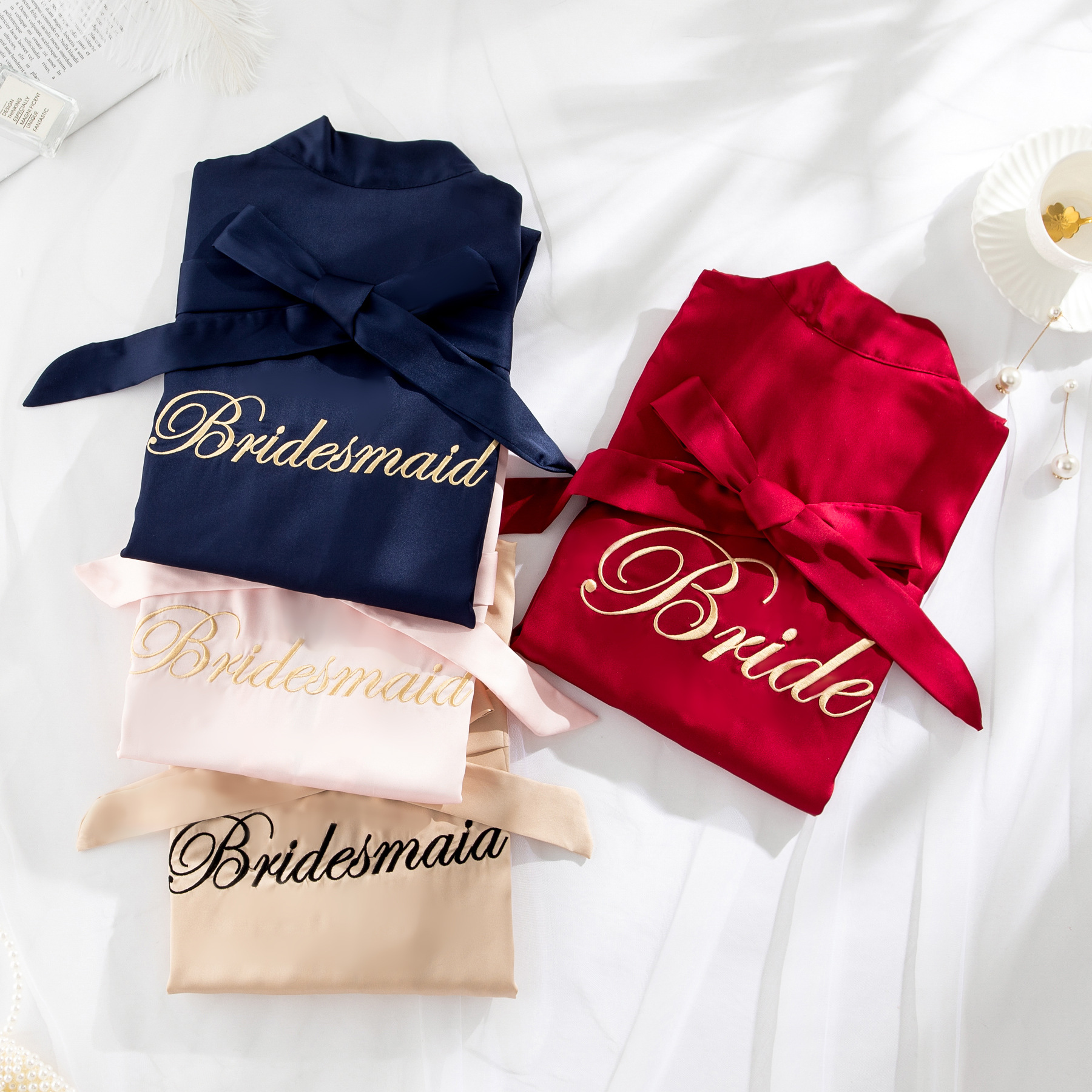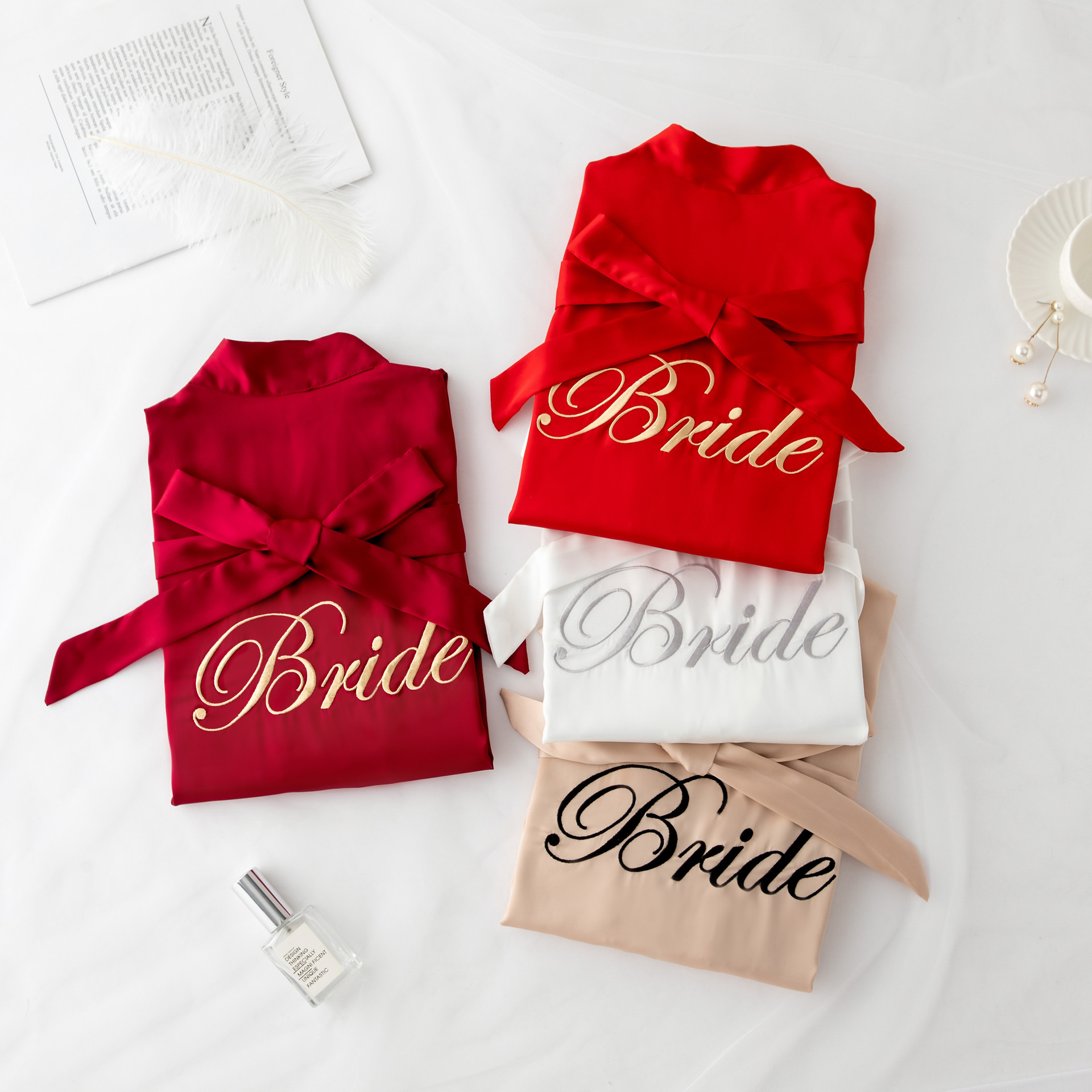 신부의 아침 가운 동반 행사 들러리 사진 실크 가운 웨딩 메이크업 자수 로고 재고 Daifa 버건디