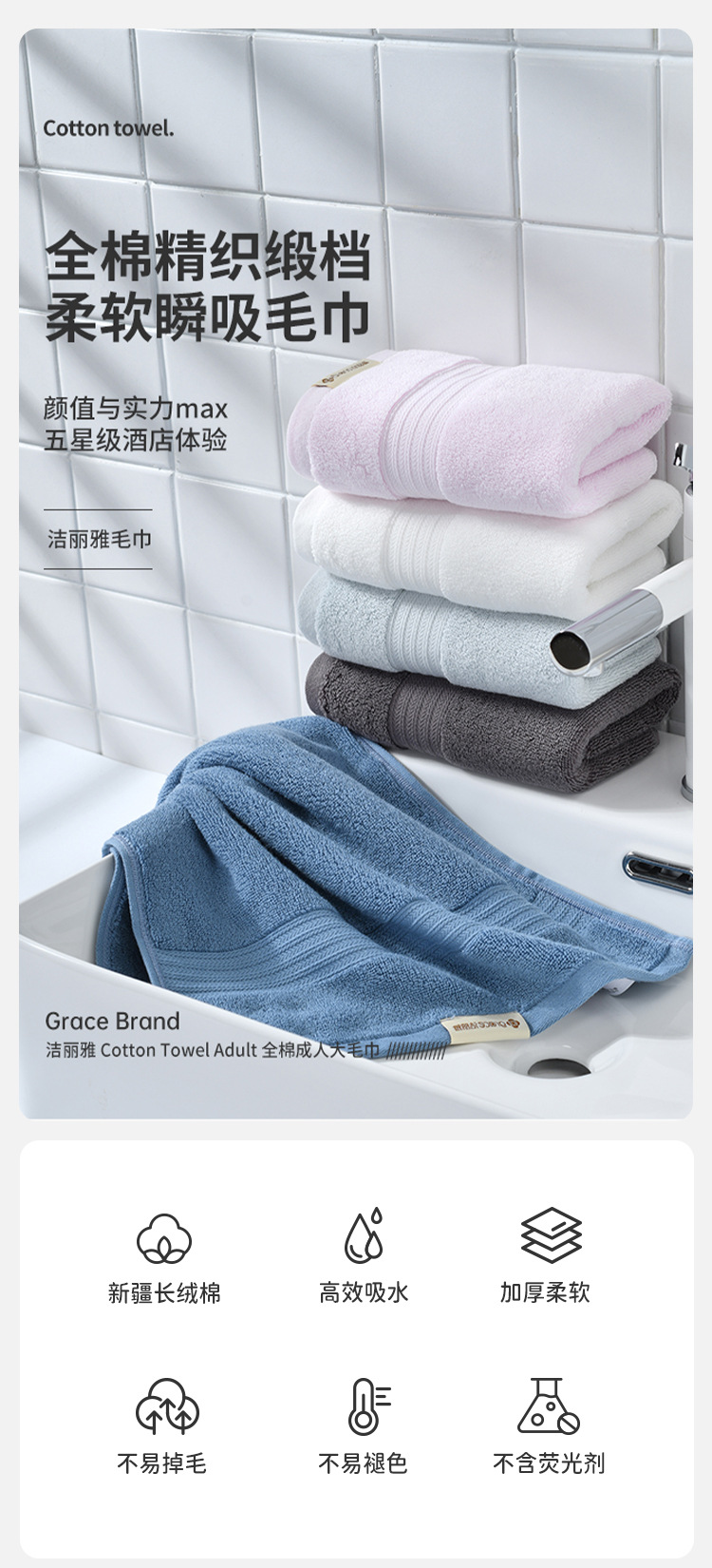 지엘리아 면 타월 페이스 타월 흡수성 보푸라기 없는 학생 클렌징 타월 클래스 A 신장 롱 스테이플 코튼 도매