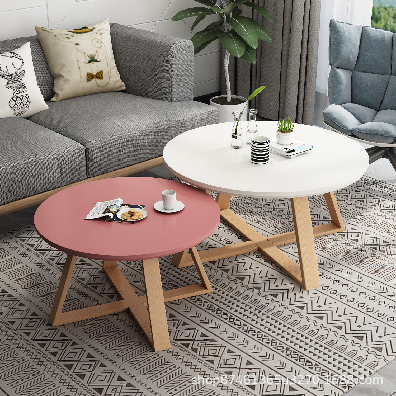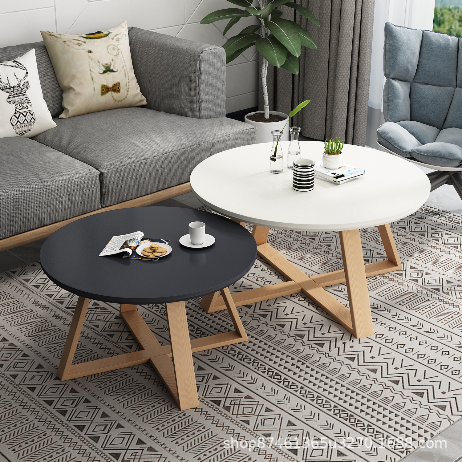 공장 스타일 북유럽 라운드 커피 테이블 현대 간단한 작은 아파트 간단한 가정용 거실을위한 창조적 인 단단한 나무 커피 테이블