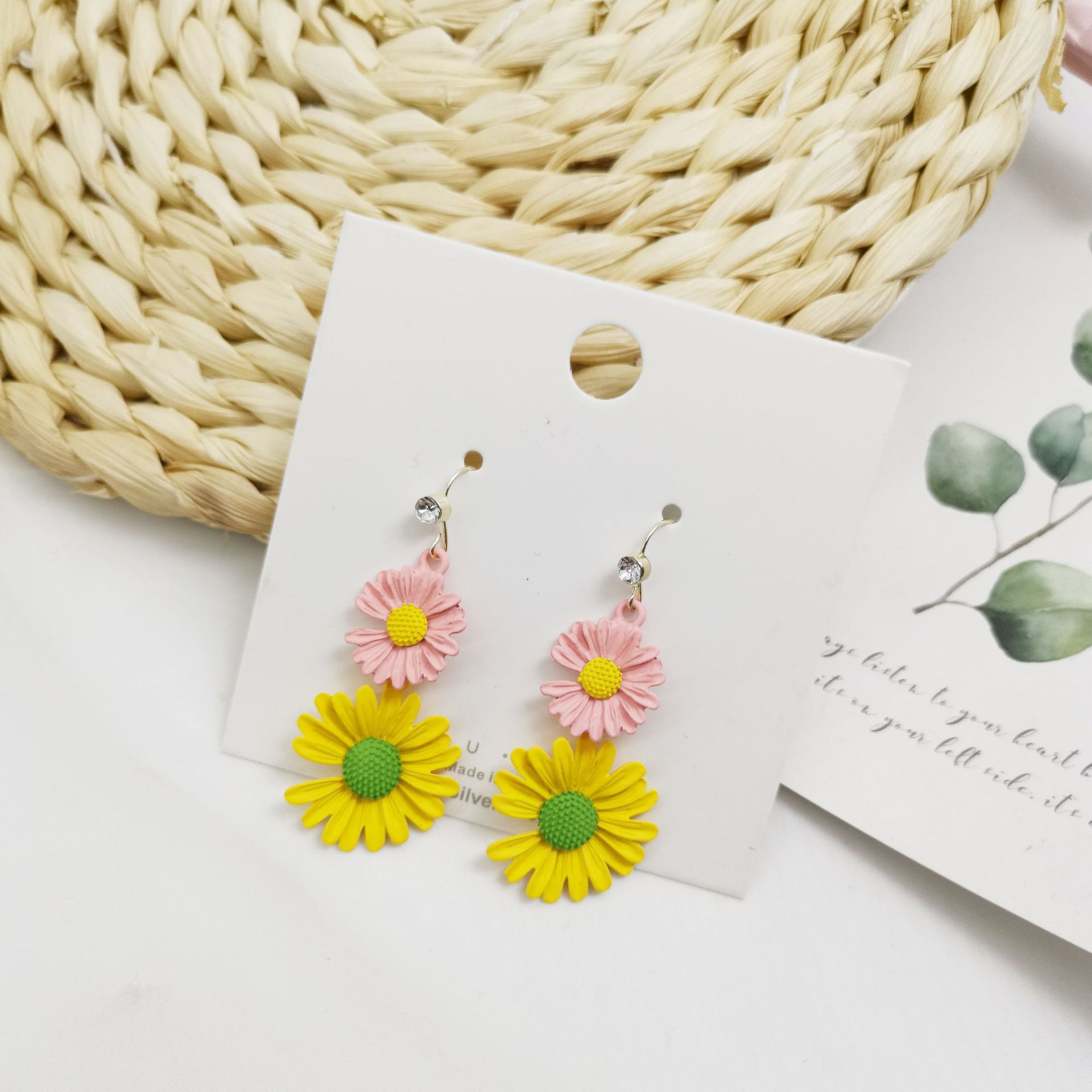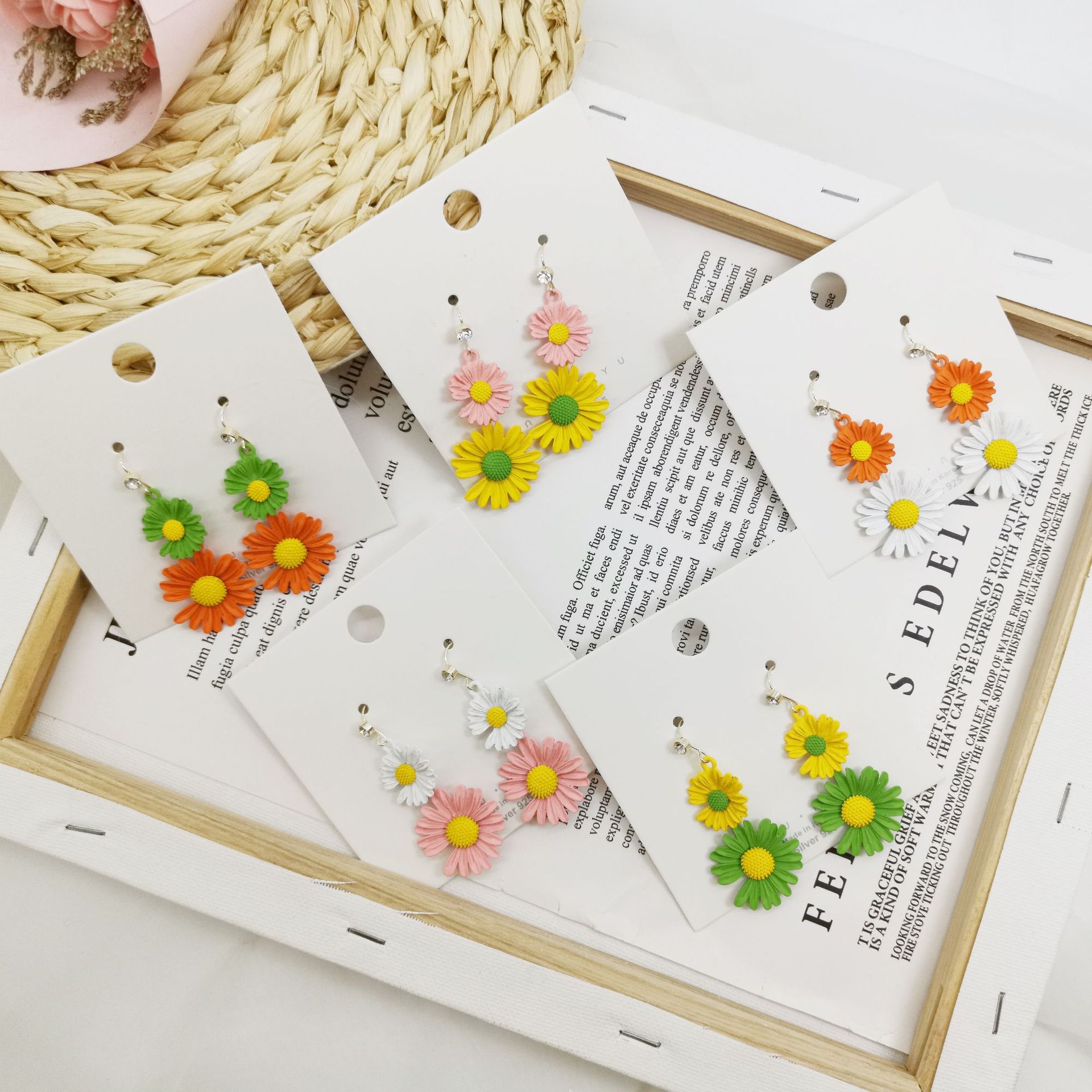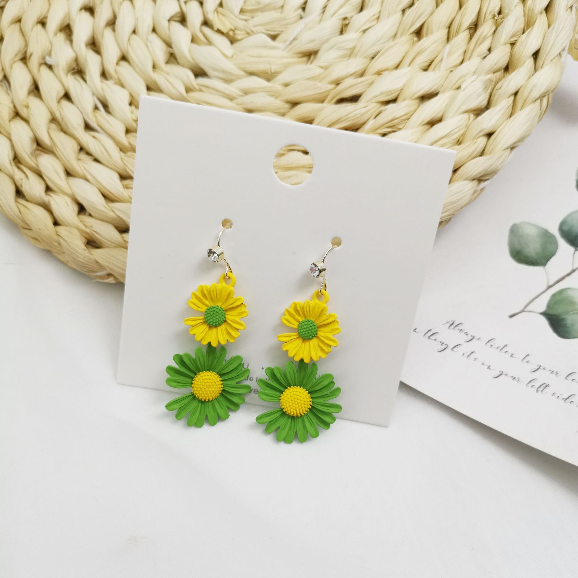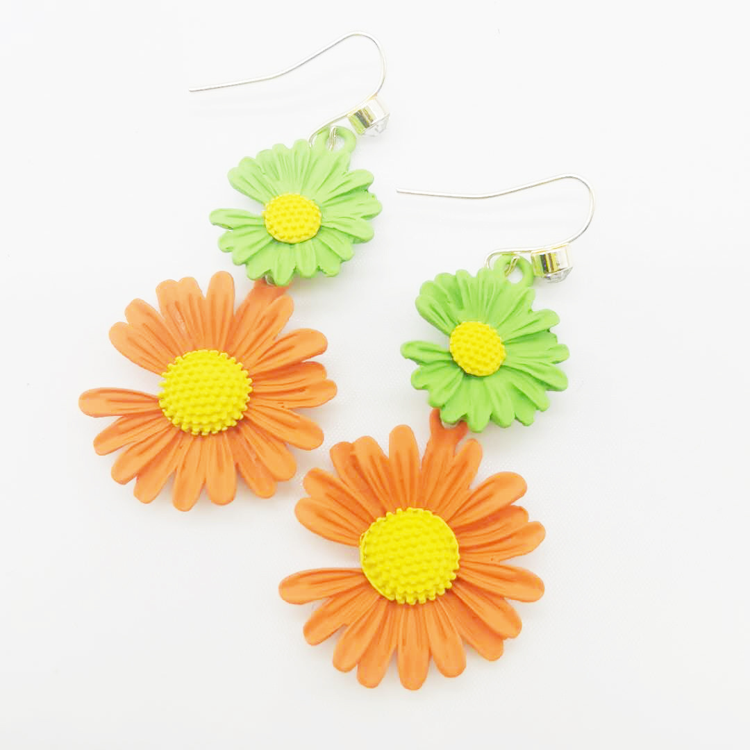 작은 데이지 귀걸이 이어 훅이 달린 Quan Zhilong 길고 슬림 한 신선한 현-꽃 귀걸이 머리카락 세대