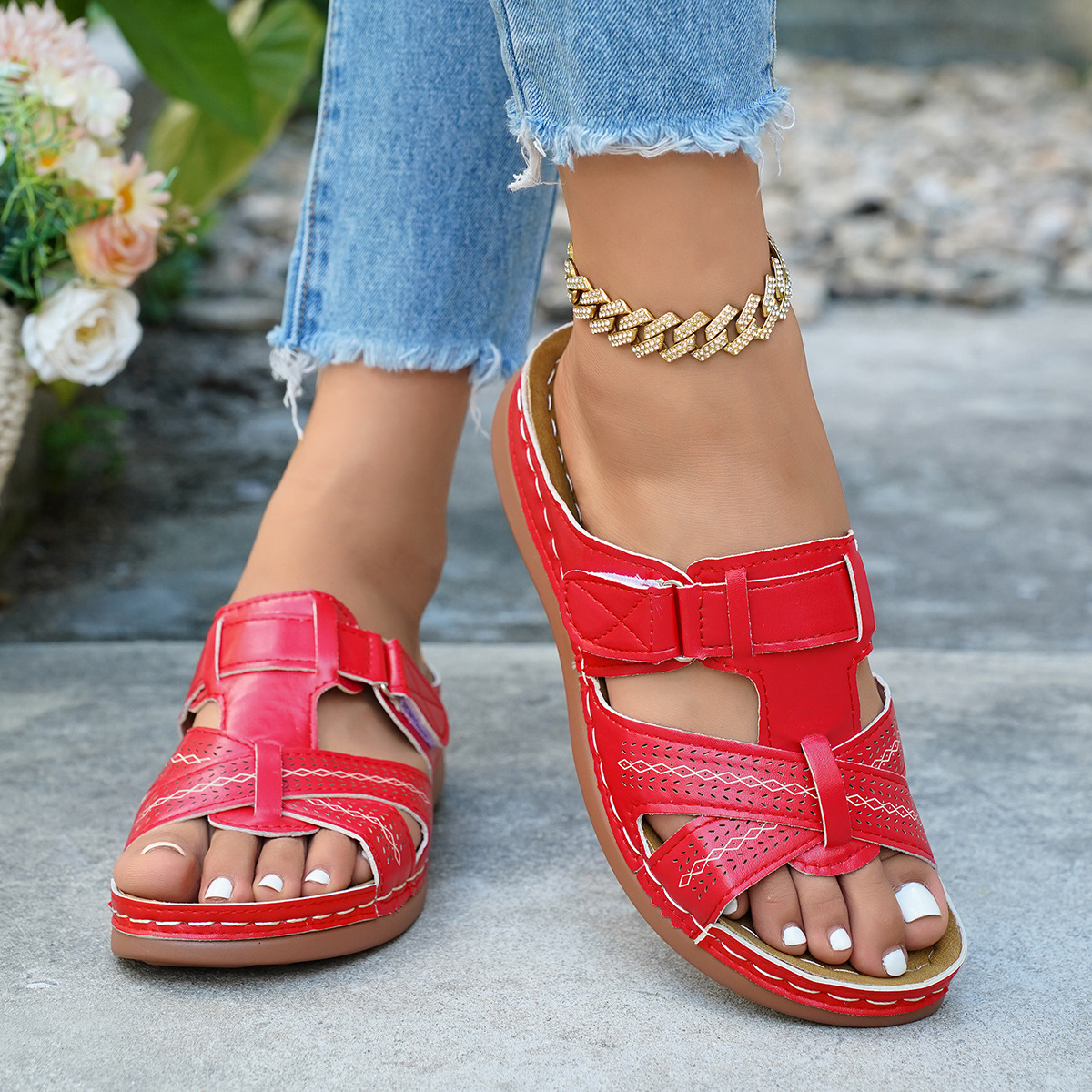 여름용 유럽풍 여성 샌들, 가볍고 빈티지한 디자인, 대형 사이즈, 수출용 여성 샌들 및 슬리퍼