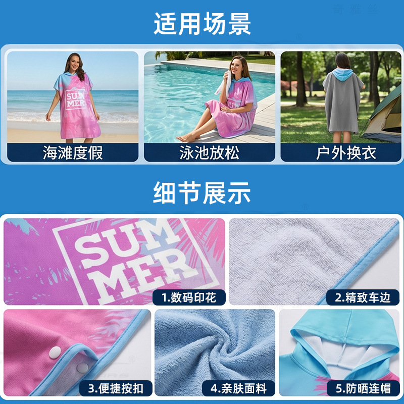 인쇄 변경 목욕 가운 성인 후드 케이프 빠른 건조 휴대용 해변 수영 웨어러블 목욕 타월 재고 도매
