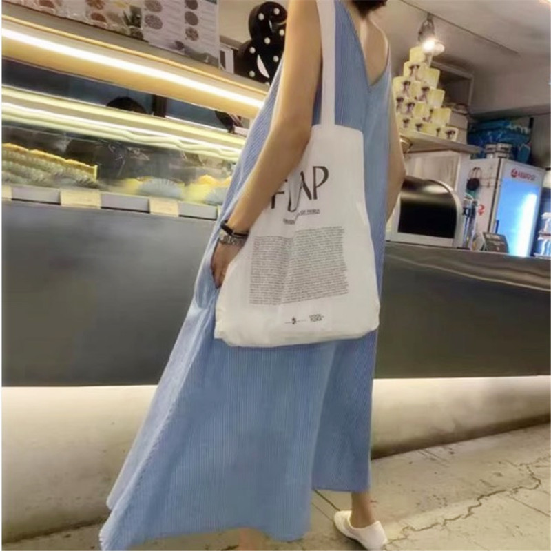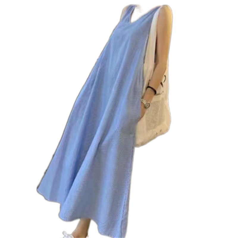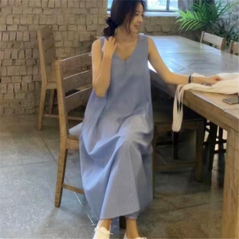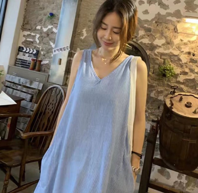 5507 한국 패션 스트라이프 조끼 원피스 2024 년 여름 새 한국어 버전 느슨한 민소매 원피스
