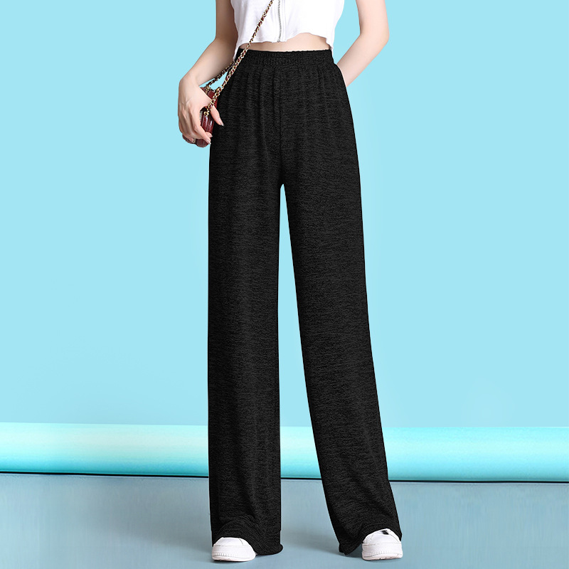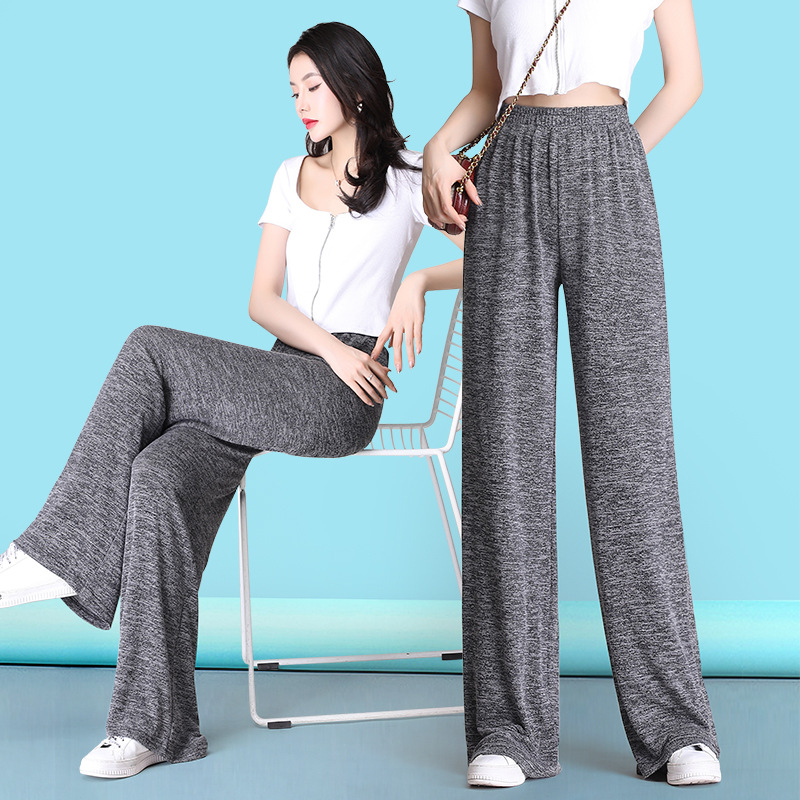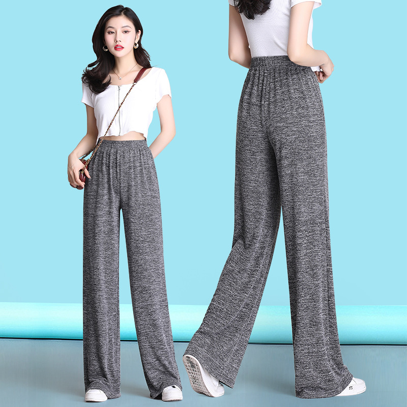 머리 니트 넓은 다리 바지 여자의 여름 높은 허리 드레이프 플러스 사이즈 긴 걸레 바지 통통녀 구름 스트레이트 바지