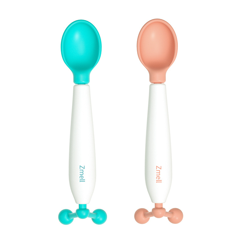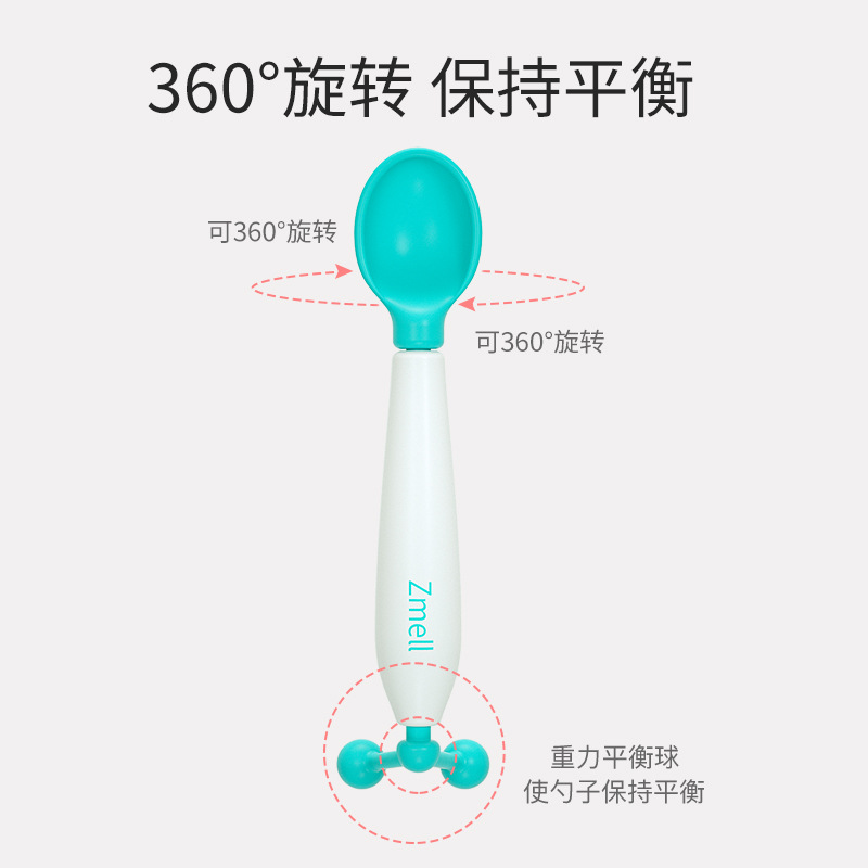 Zmell/稚美儿童勺可旋转训练勺婴儿感温勺果泥辅食吃饭勺子宝宝餐具