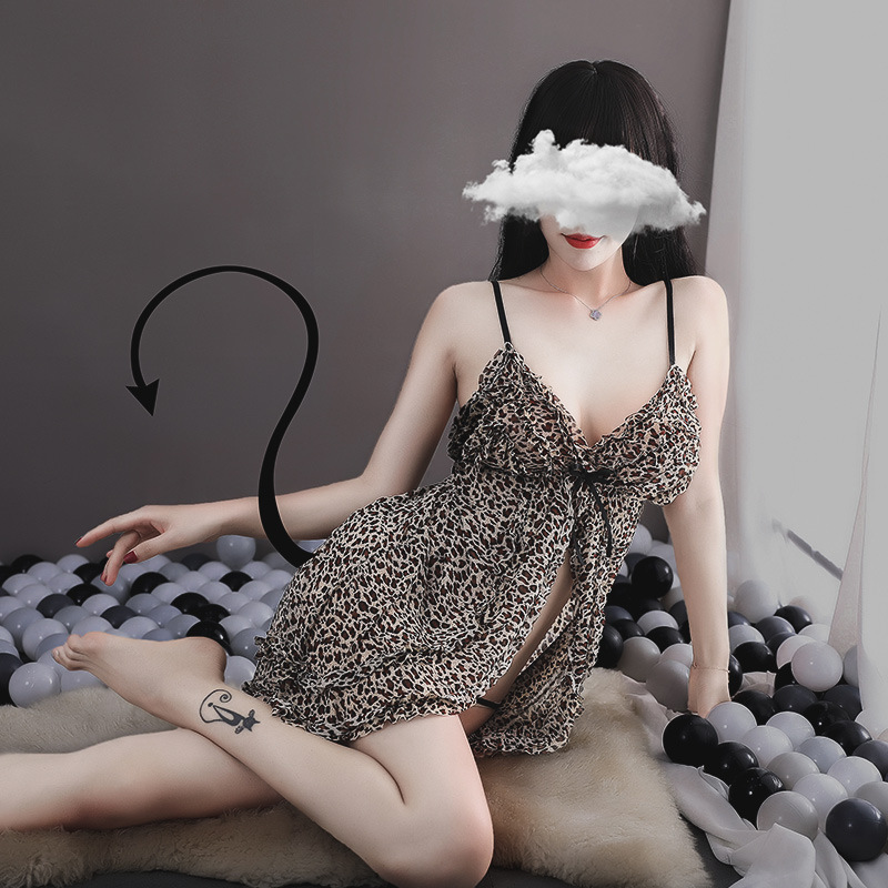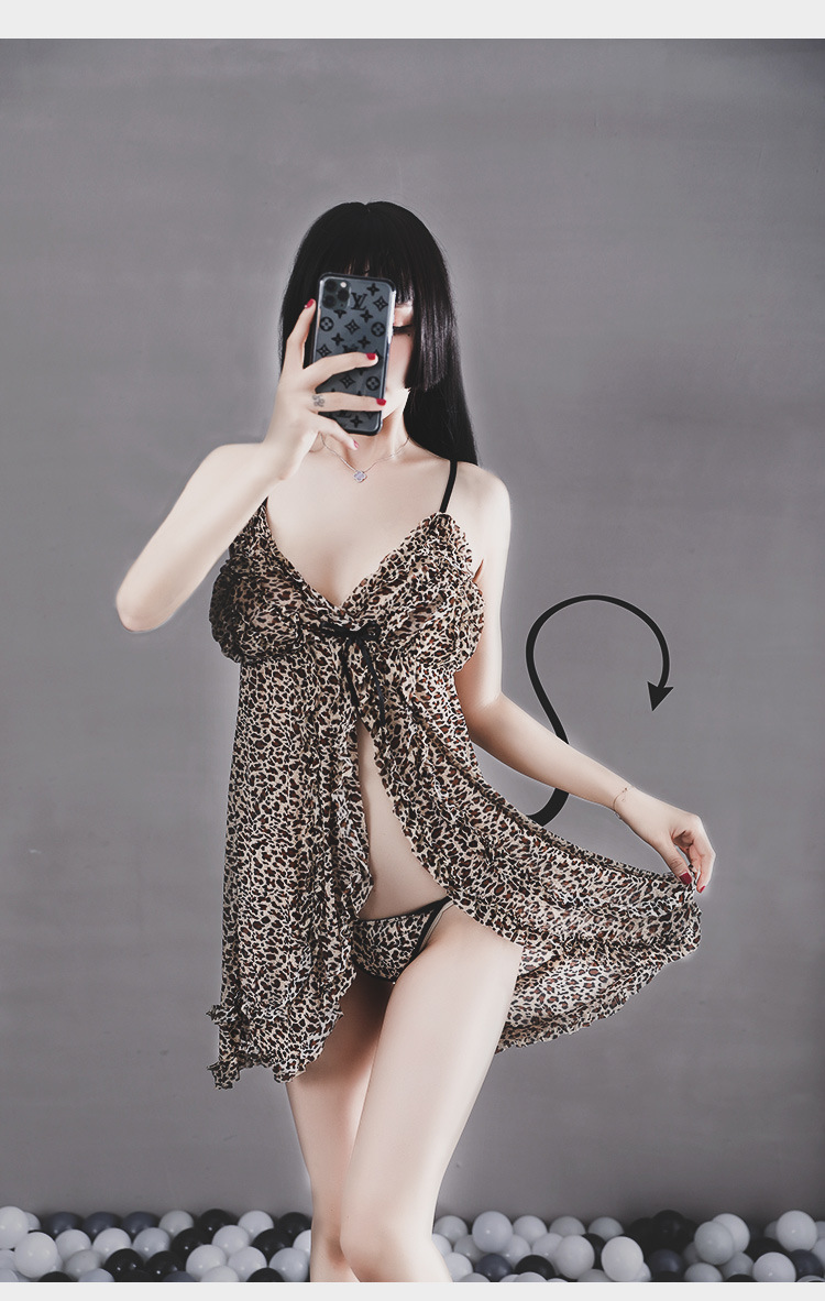섹시한 속옷 유혹 순수한 열정 세트 통통녀 레오파드 무늬 유혹하는 성적 관심 잠옷