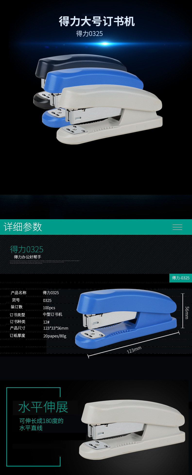 델리 0325 스테이플러 12 호 스테이플러 스테이플러 용지 두께 사무용품