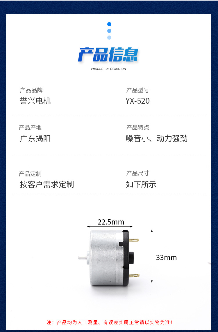 YX520 브러시형 DC 모터 24V 헤어드라이어 청소 로봇 마이크로 모터 미니 팬 카본 브러시 모터