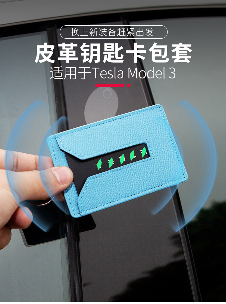 Tesla Model 3 Y 키 카드 케이스 용 가죽 가죽 커버 수정 Pu 버클 카드 액세서리