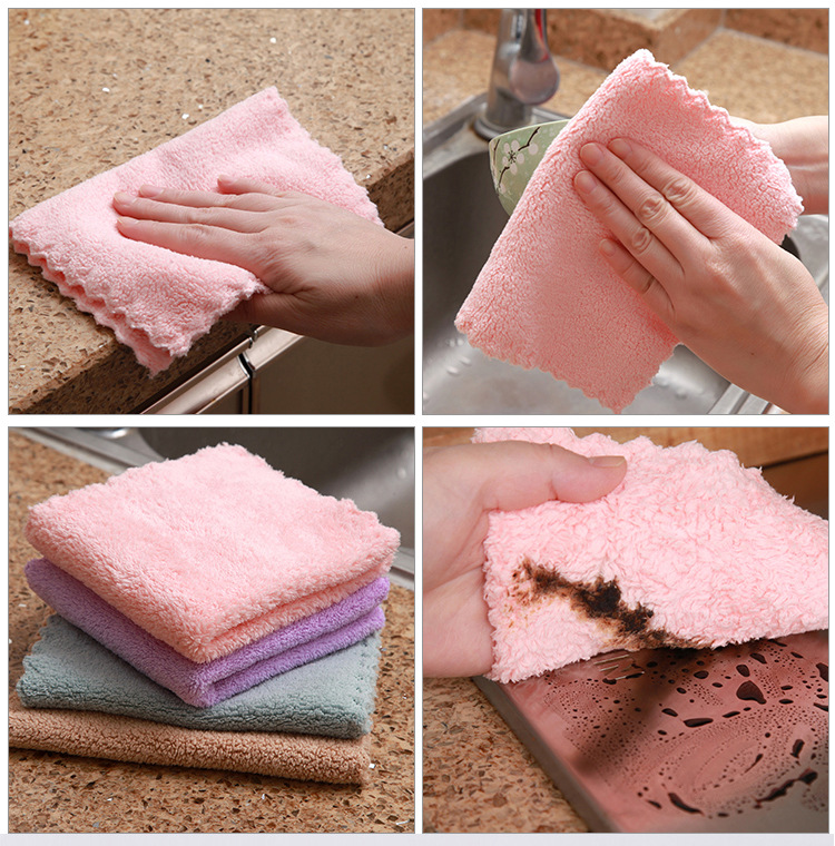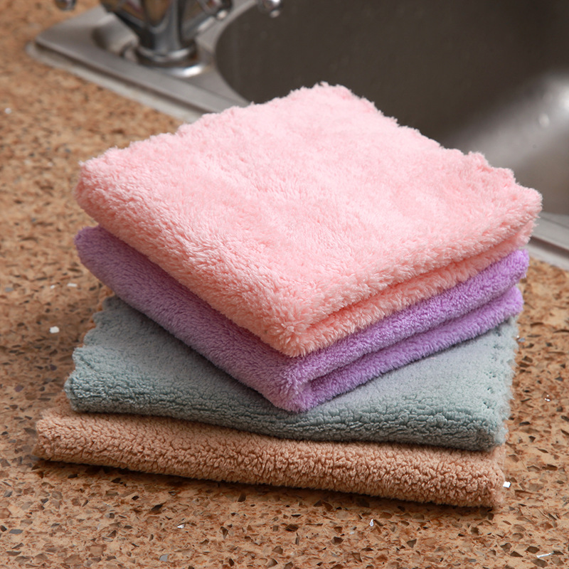 두꺼운 주방 청소 천 도매 산호 양털 양면 게으른 접시 타월 두꺼운 기름이없는 천