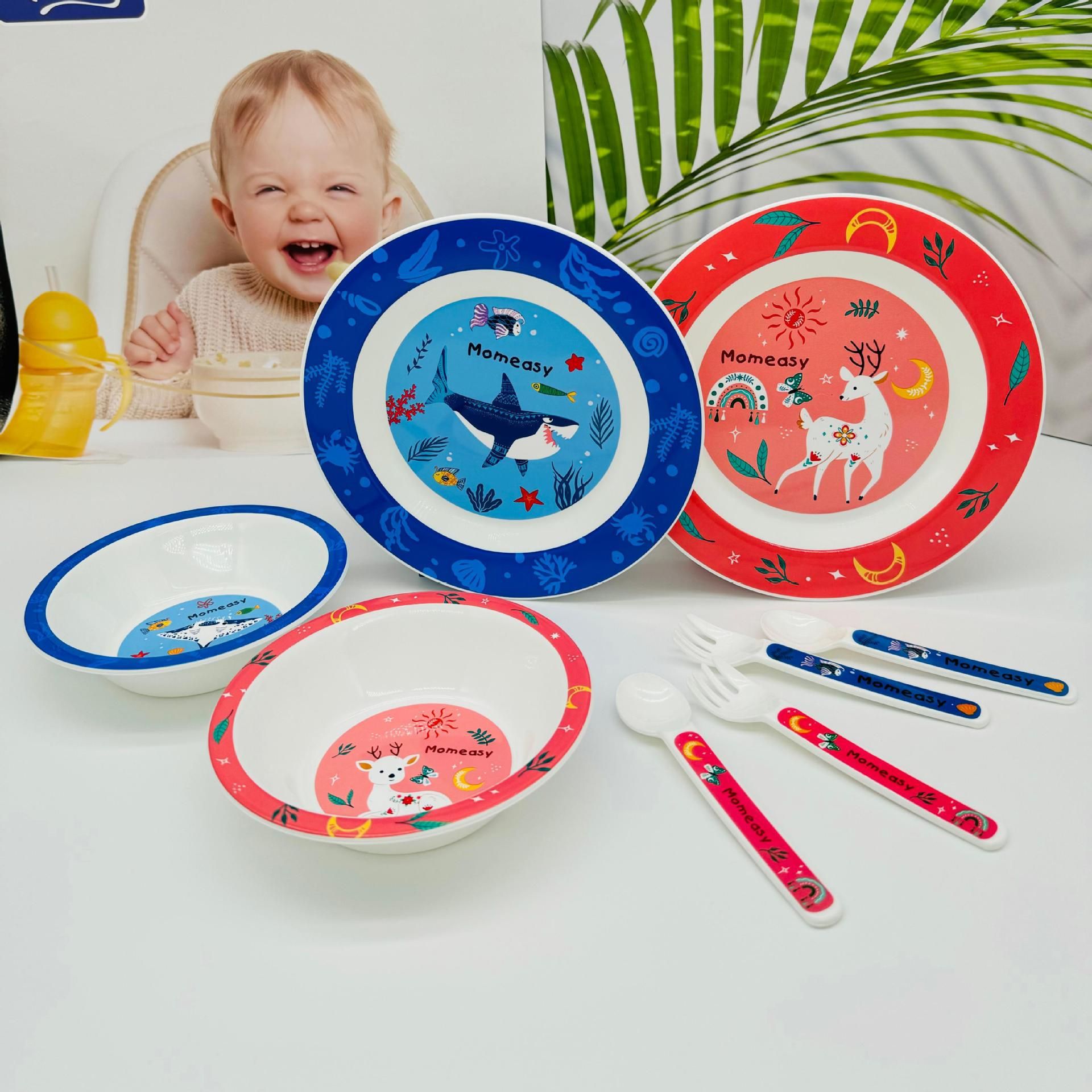 식기 세트 플라스틱 PP 둥근 그릇 둥근 접시 더 포크
