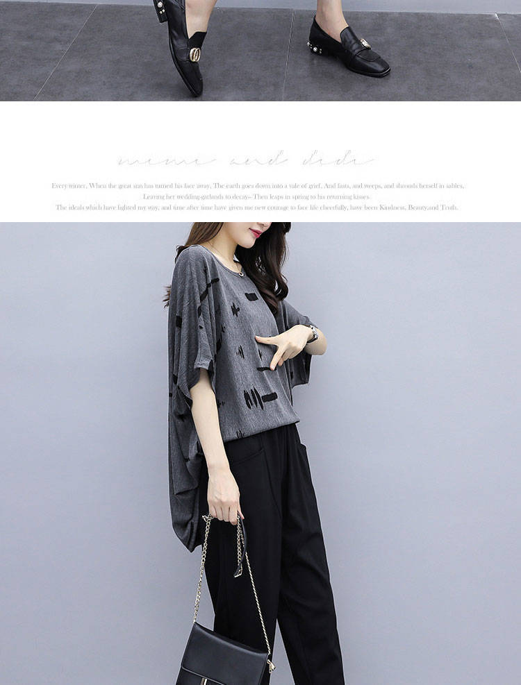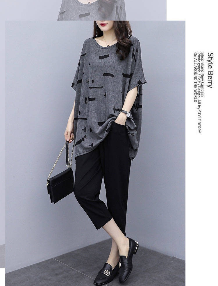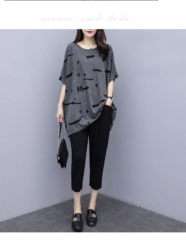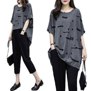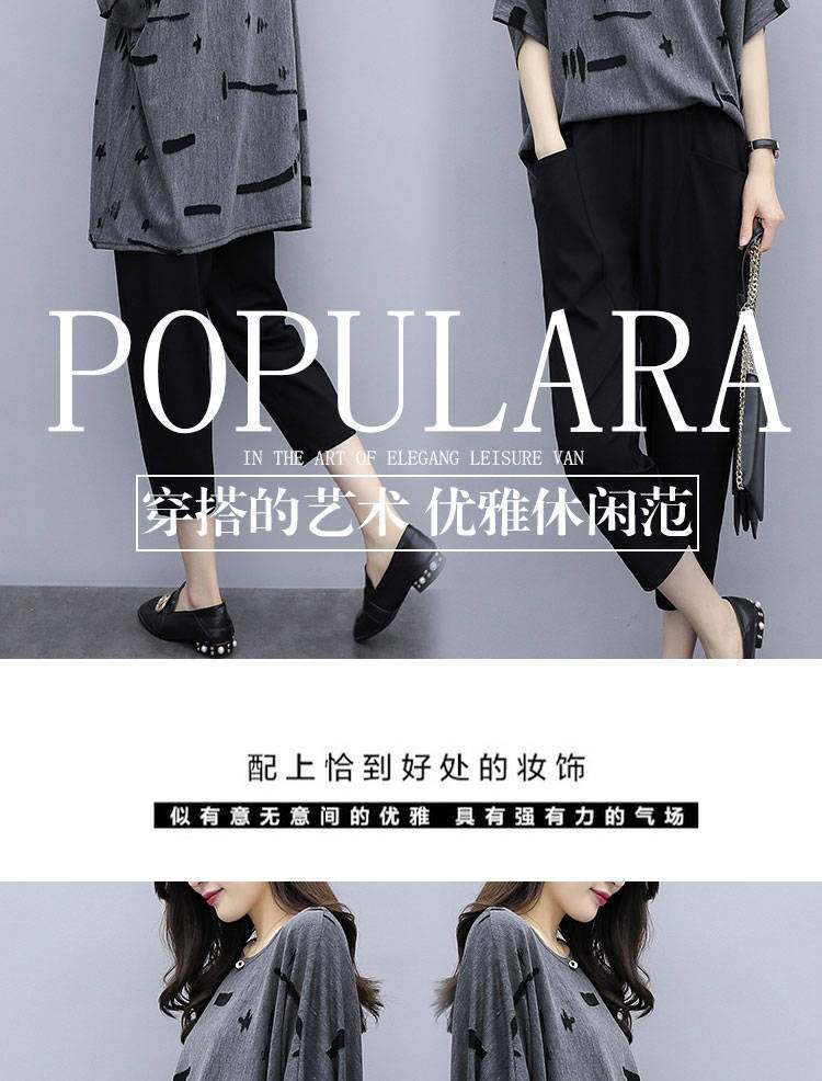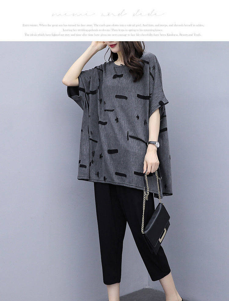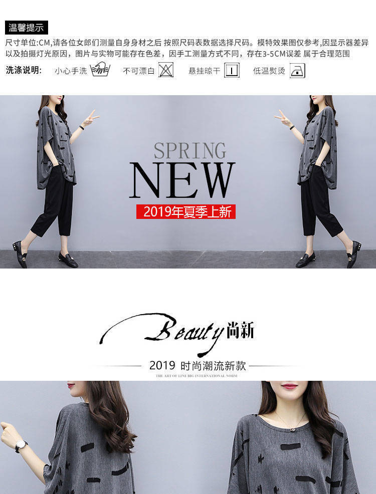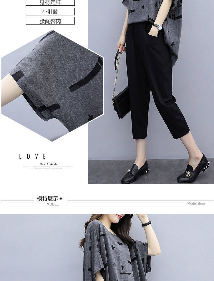 뚱뚱한 플러스 사이즈 여자 200kg 세트 뚱뚱한 여동생 반팔 티셔츠 외국 스타일 배꼽 커버 통통녀 슬림 투피스 세트