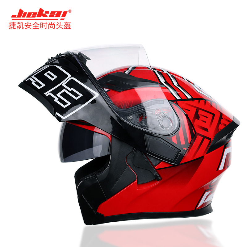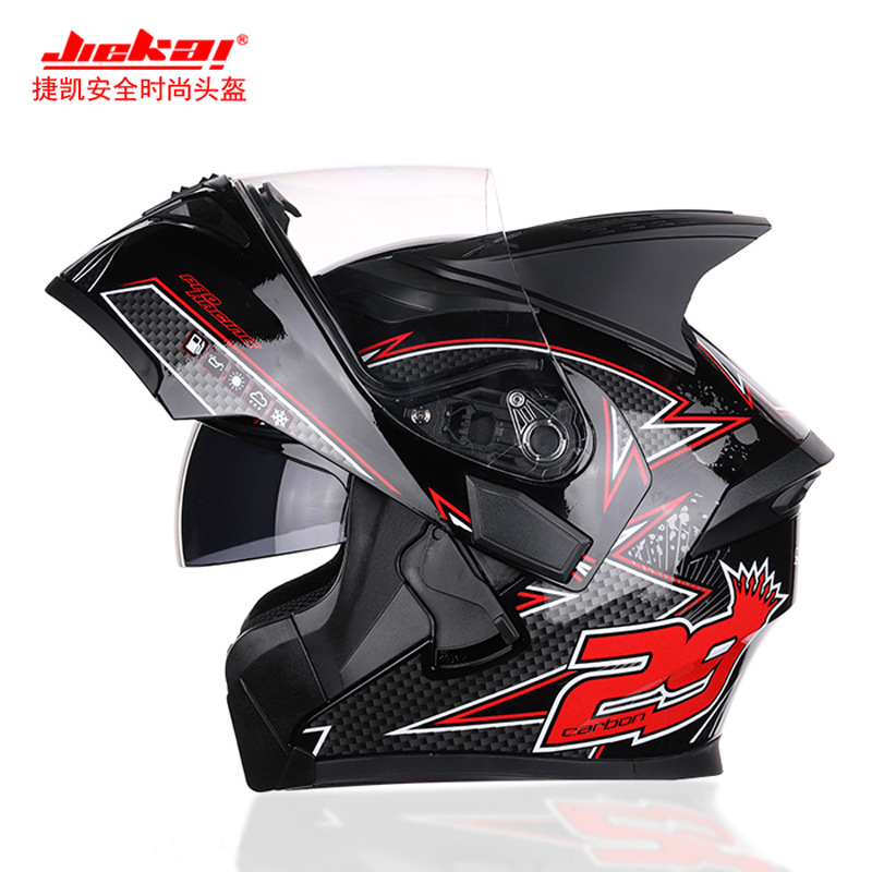 Jiekai 오토바이 헬멧 남성과 여성의 겨울 따뜻한 전기 자동차 사계절 유니버설 풀 커버리지 김서림 방지 더블 미러 JK902