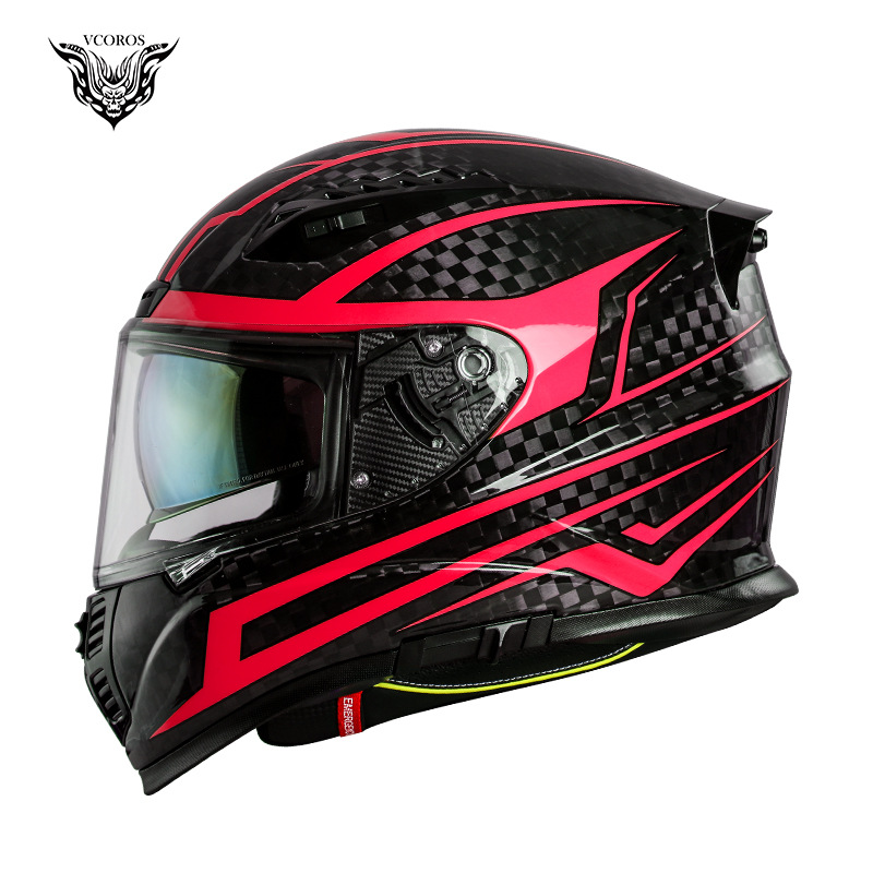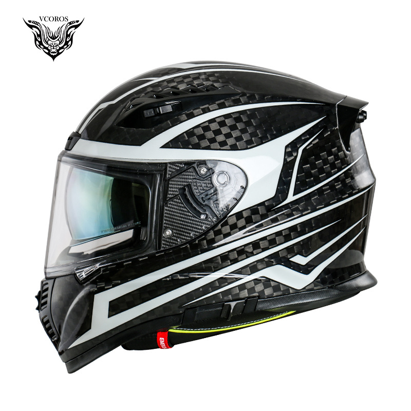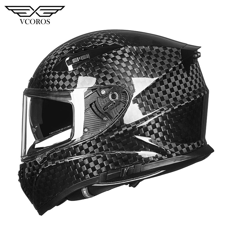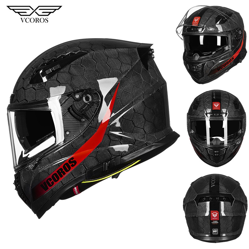 VCOROS 탄소 섬유 풀 헬멧 남자의 오토바이 헬멧 전체 커버 개성 오토바이 안티 안개 더블 렌즈 빛나는 달리기 헬멧