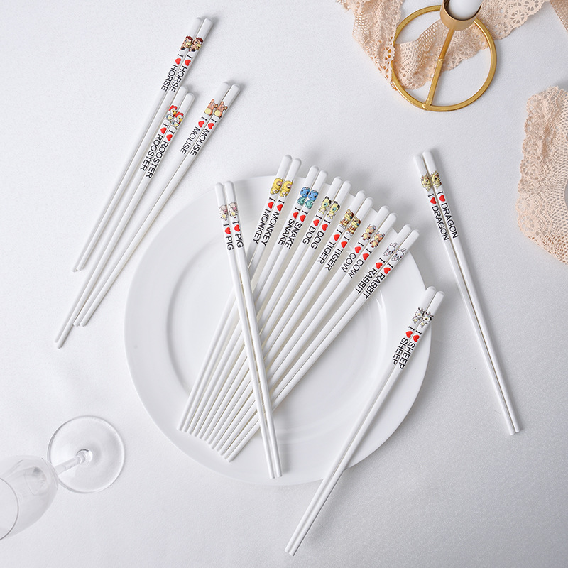새로운 중국 스타일 구운 꽃 가족 초상화 세라믹 젓가락 가족 구성원 패턴 식기 개인 식기 공장 직접 공급