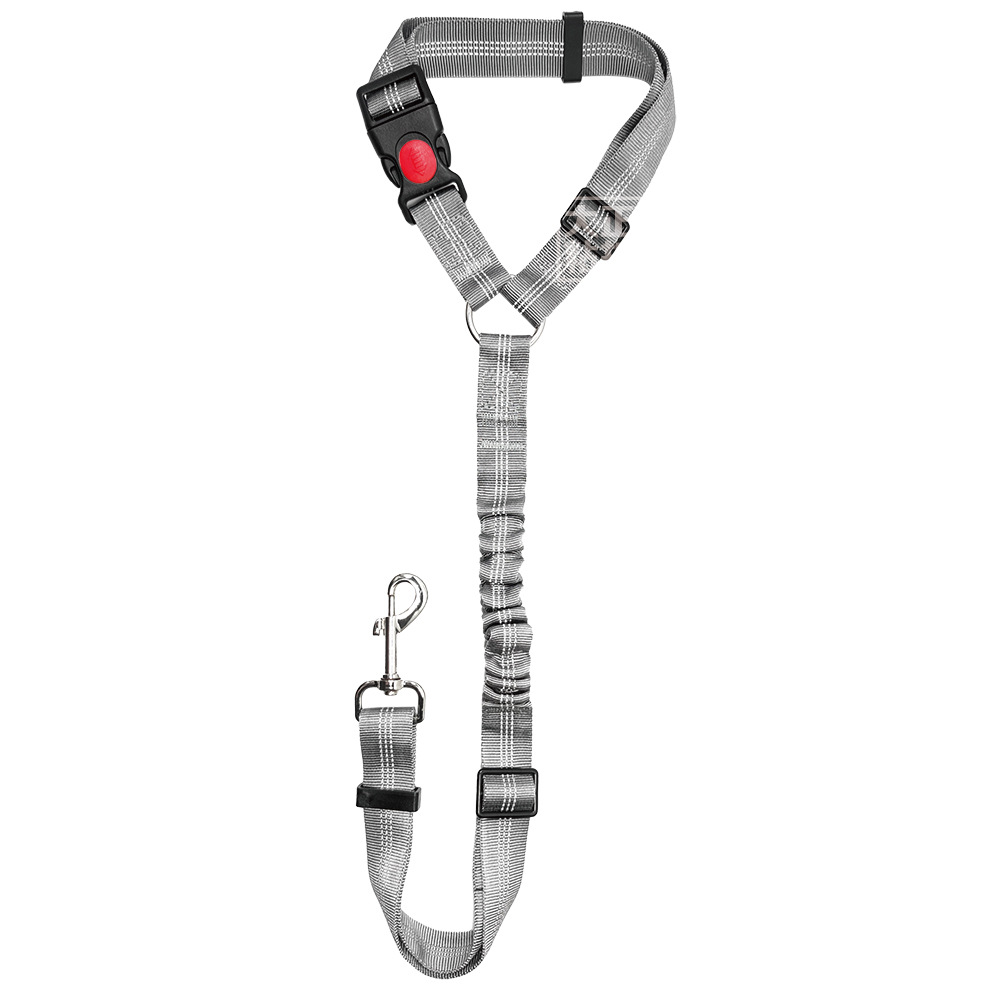 一头栓在宝贝的项圈上,一头叉在车车安全带的插口上