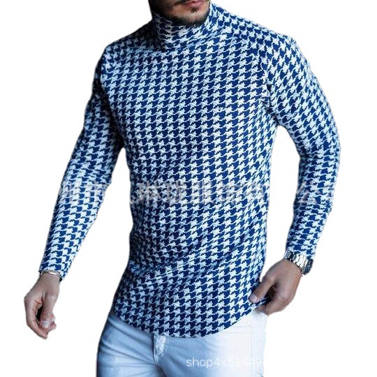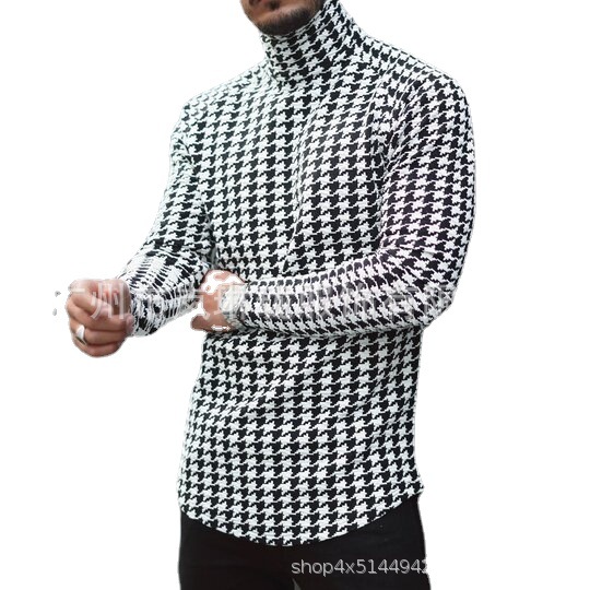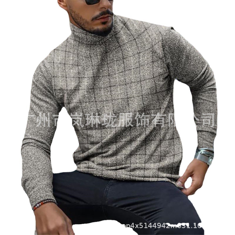 2023 새로운 봄과 가을 풀오버 남성용 슬림핏 긴팔 티셔츠 남성용 하이 칼라 스트라이프 베이스 셔츠 티셔츠 남성복