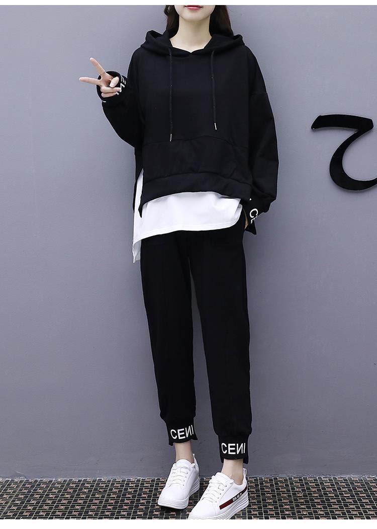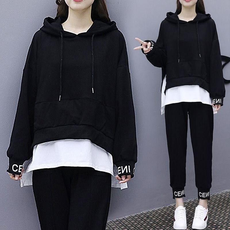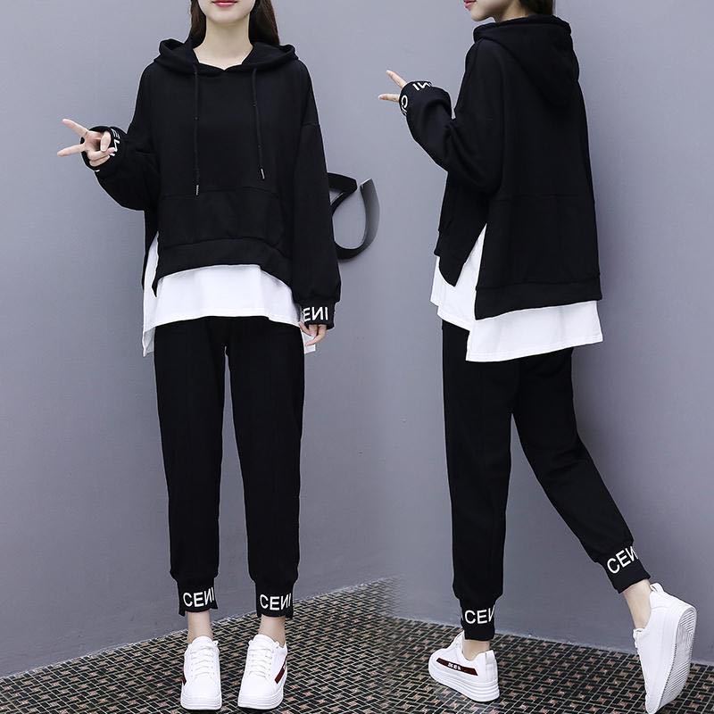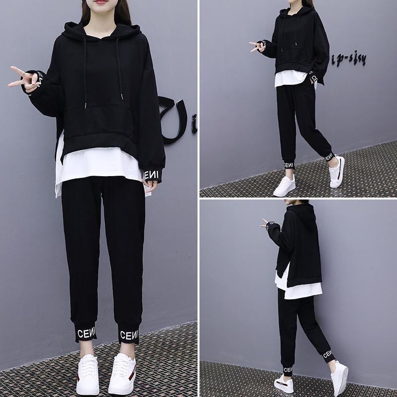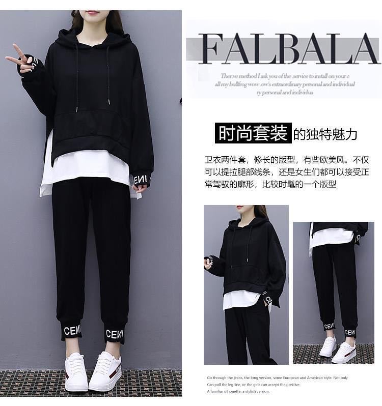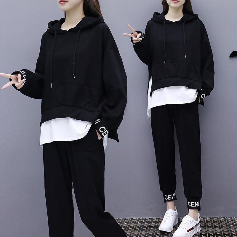 스포츠 세트 여성 가을과 겨울 학생복 한국식 루즈한 패션 2020 소셜 하라주쿠 스타일 캐주얼 BF 투피스 세트